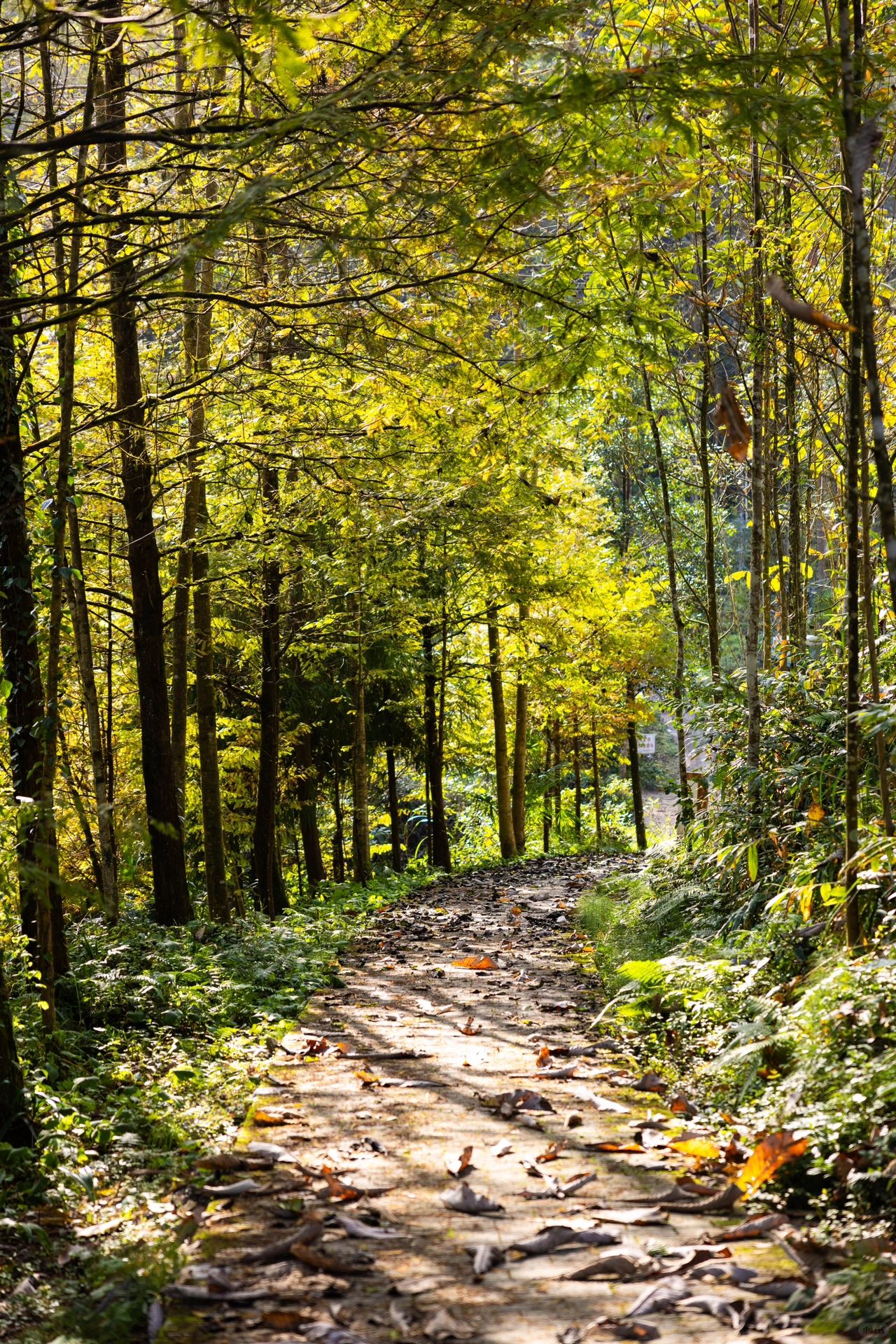 2️⃣90%路线被树林遮挡,植被丰富。