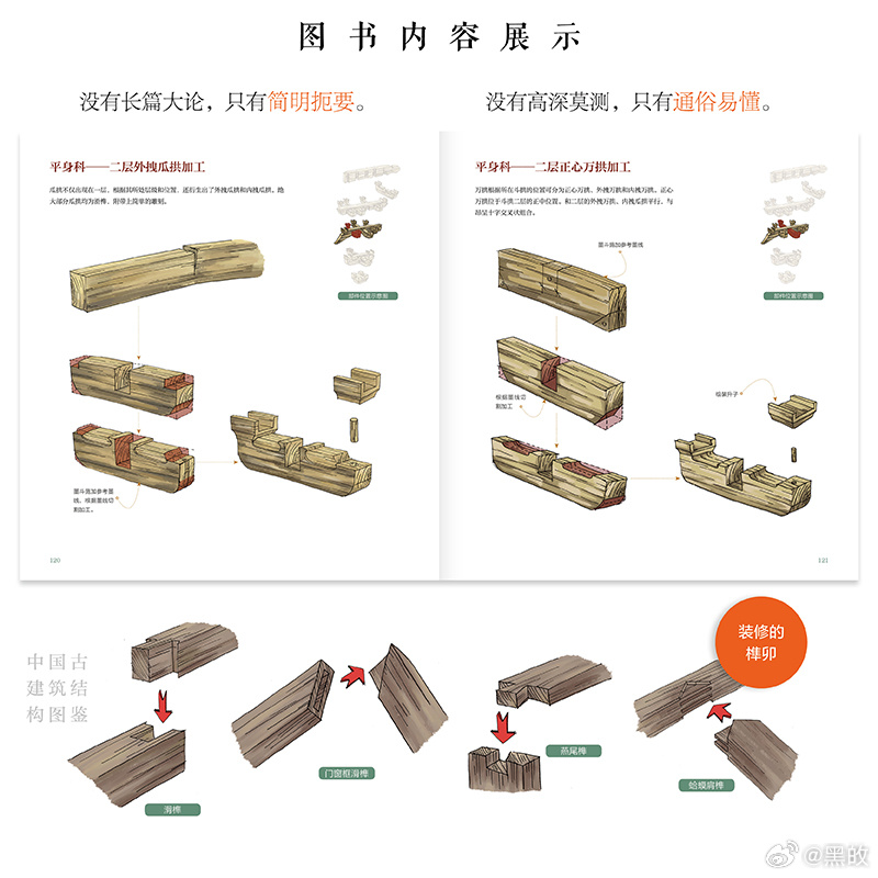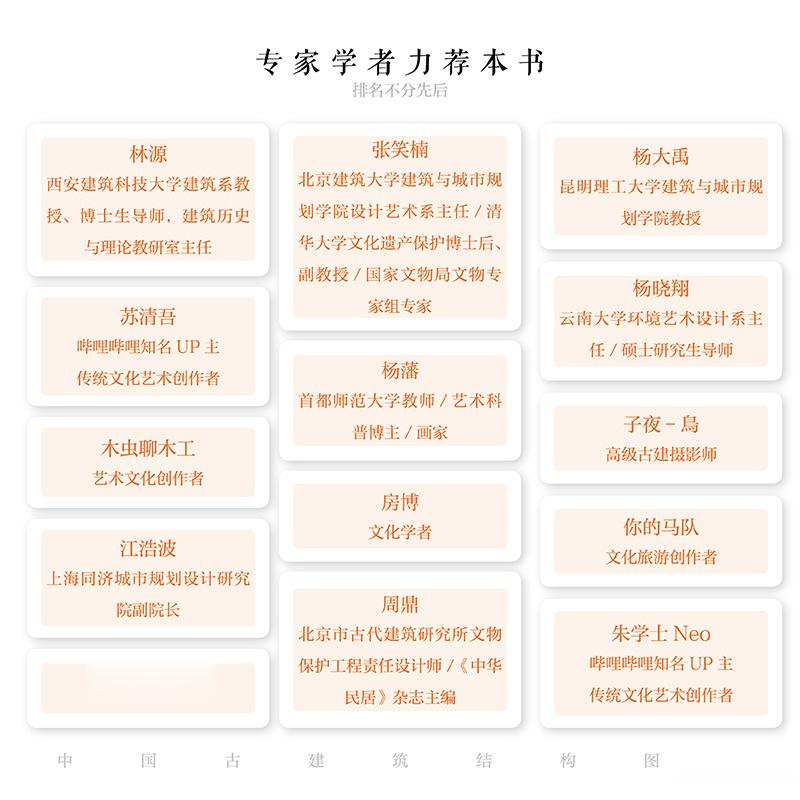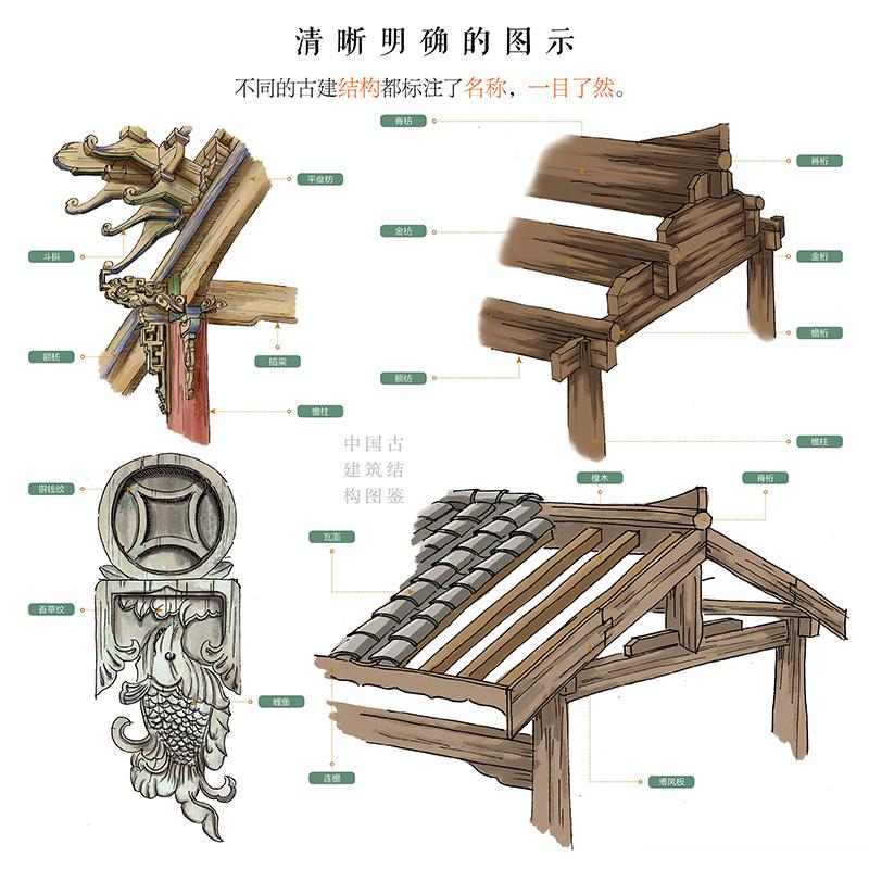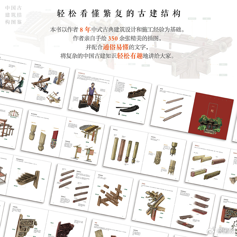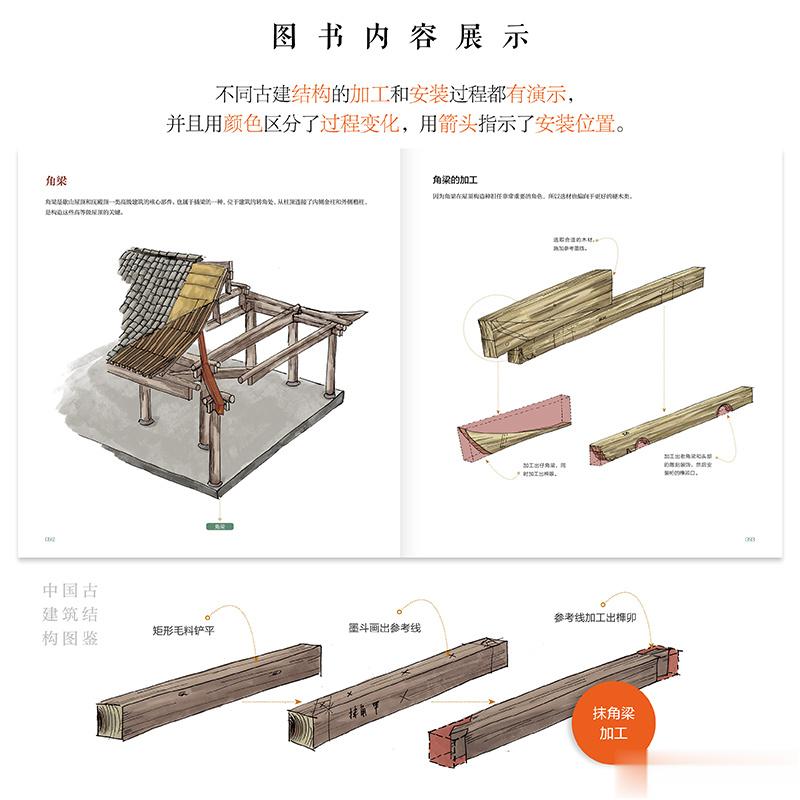 《中国古建筑结构图鉴》以轻松、有趣、易懂的图解形式,系统讲解了古建出材、柱、枋、梁、斗拱、桁、屋顶、瓦作、装修等知识。对每个古典建筑构件的加工和安装过程进行了演示和剖析。书中所有的插画都是作者亲手绘制,与简明扼要的文字解析相结合,非常适合大家阅读,是一本了解古建知识的优秀读物。这本书也得到了众多一线专家学者的力荐。
