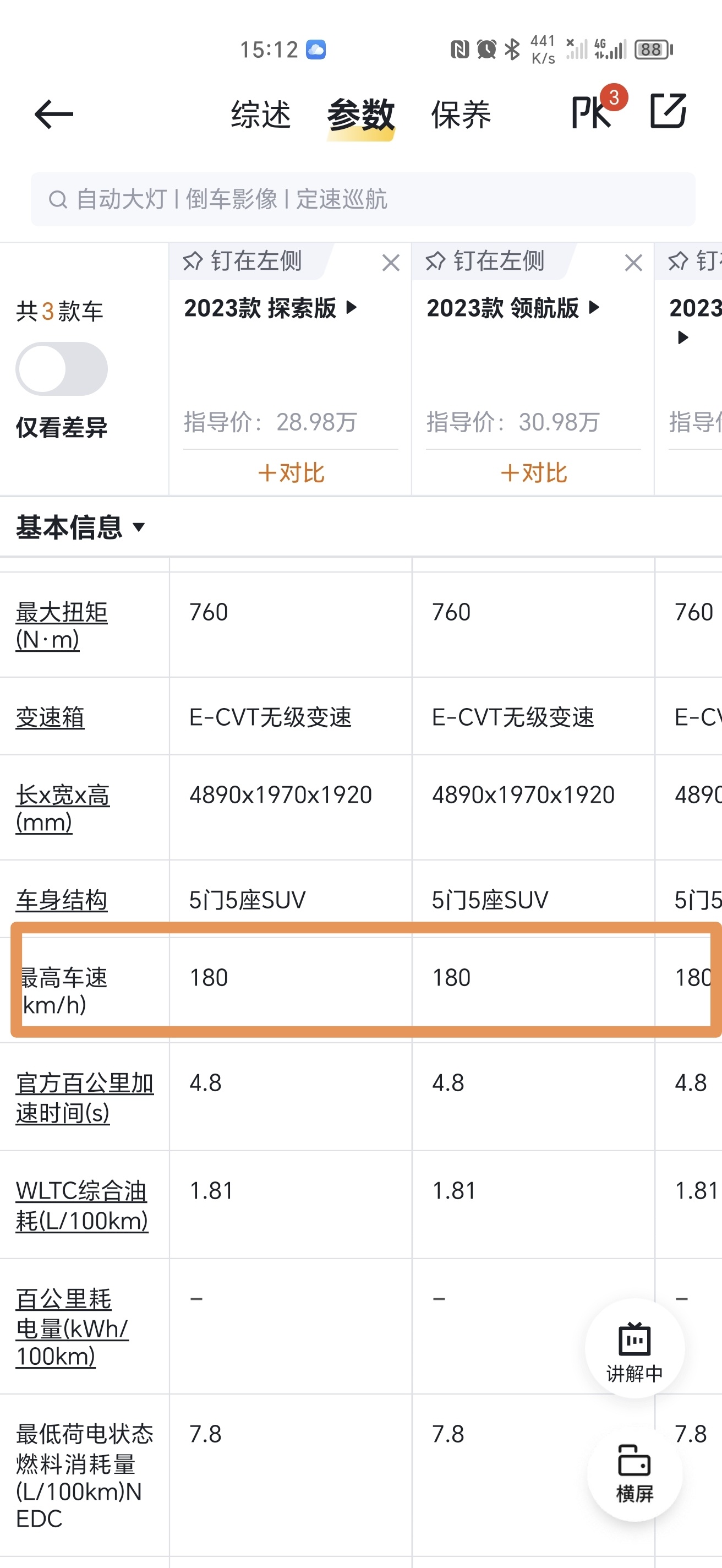 比亚迪有点虚标参数,明明能开到180km/h以上的非说自己限速180,另外越野车这点速度够用么[二哈]
