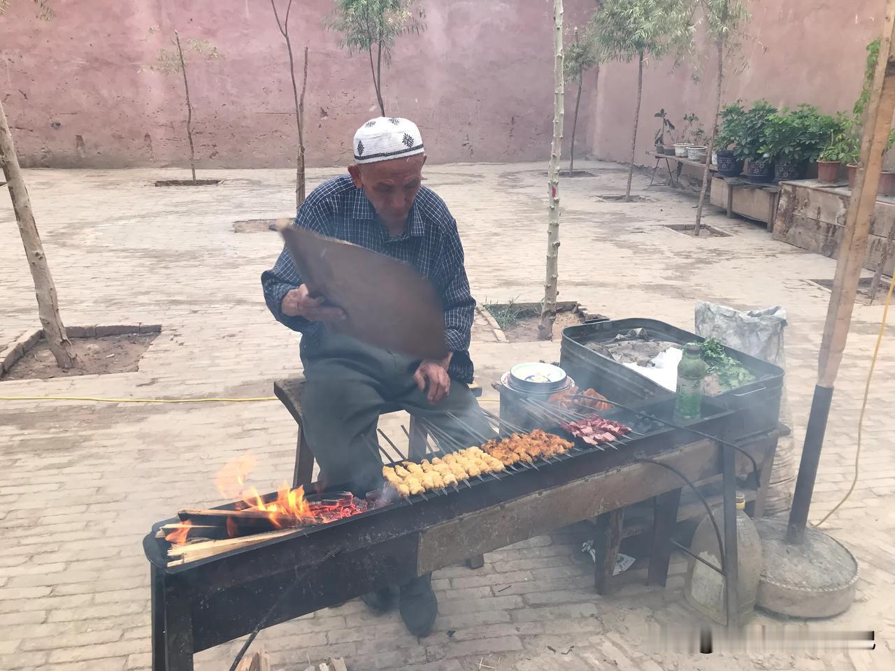 在喀什古城,遇到了一个79岁的维吾尔族老大爷,一个人,一个烧烤架,一张长桌,就是一个简单的烧烤摊。只卖烤羊肠和烤羊脾,一元一串,还能找到这么便宜实惠的地方吗?看看这人气