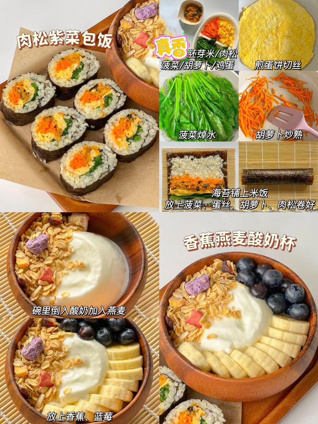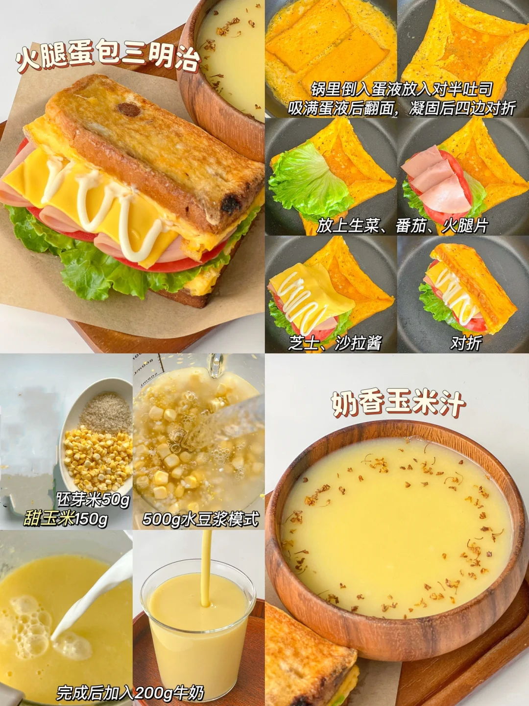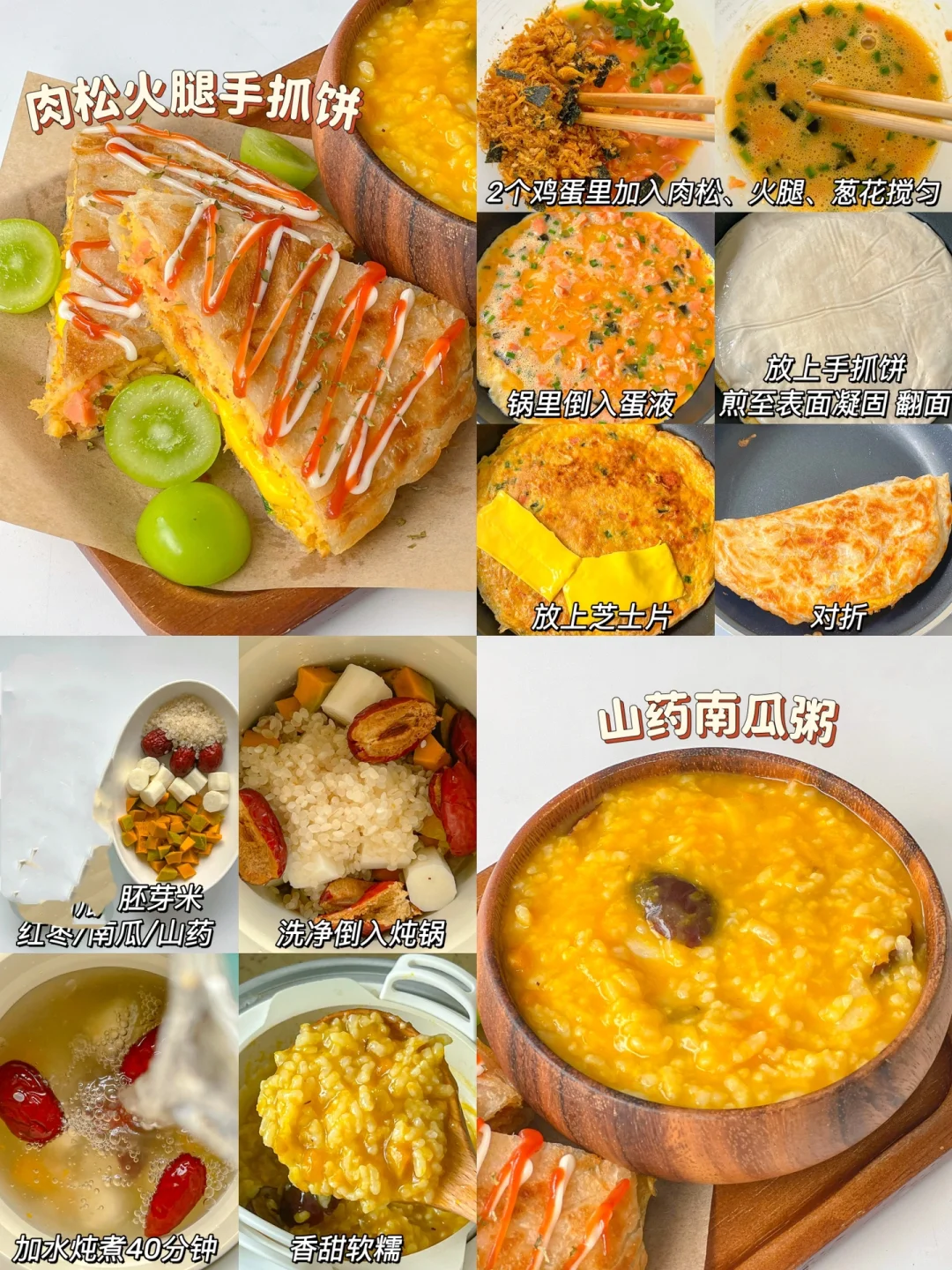 halo啊!!![樱花R] 话不多说简单分享早餐 - 🌐火腿手抓饼+南瓜红枣粥 🌐海苔肉松饭团+香蕉酸奶碗 🌐滑蛋虾仁贝果+紫薯芋泥奶 🌐蛋抱煎饺+三鲜菌菇汤 🌐懒人酱香饼+生菜海鲜粥 🌐火腿蛋包三明治+奶香玉米汁 - baby公主们👸🏻 好好恰饭~好吃不胖