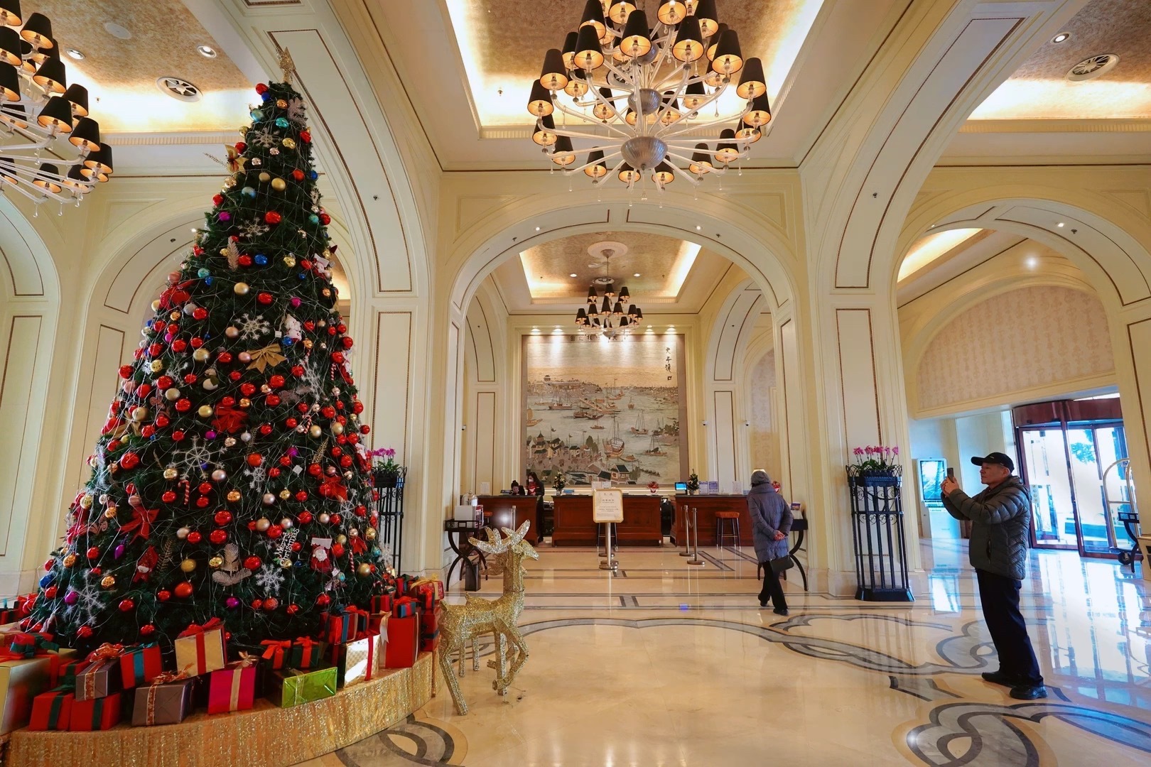 天津海河边的利顺德大饭店始建于1863年,它是中国第一家涉外酒店,每个房间都住过名人。我们这次不是住酒店,而是来吃午饭。酒店一层有家日料店,便宜好吃,还能顺便逛逛酒店,感受大圣诞树带来的节日气氛。