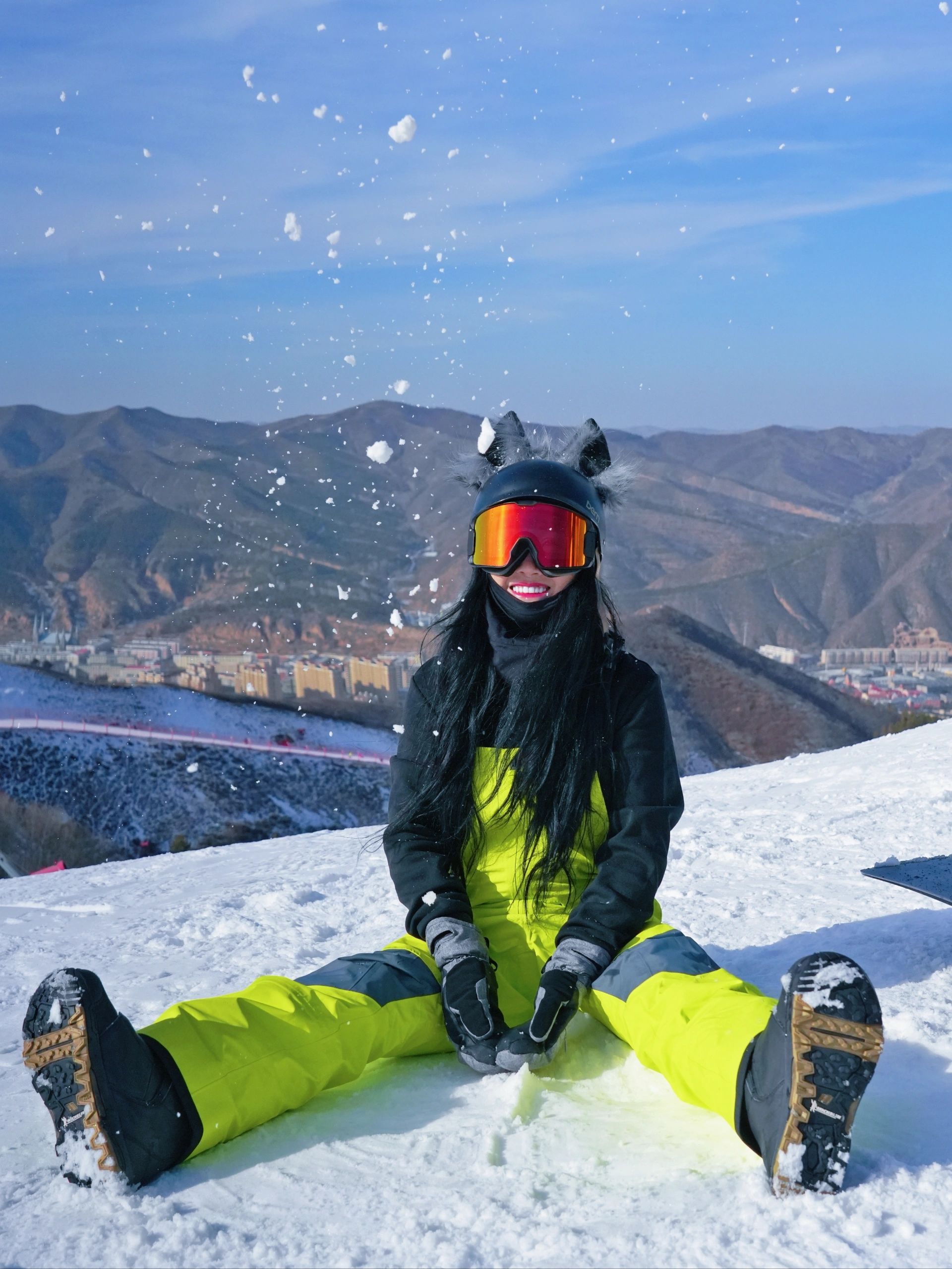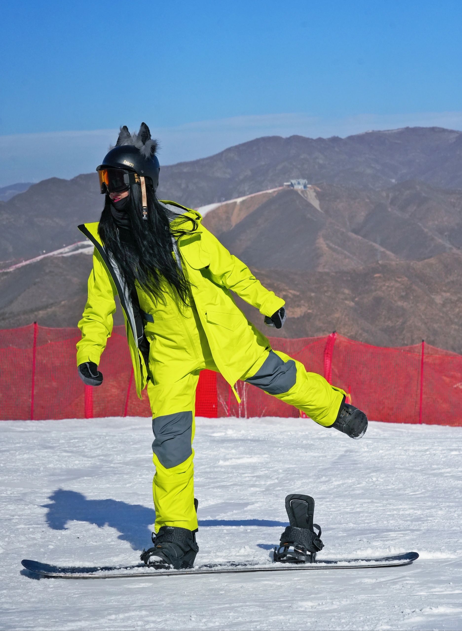 嗨我是小蓝,这是我的第十四个雪季,听说今年好流行荧光色,那我怎么能落伍,一套颜色靓丽的滑雪服,一个可可爱爱的小耳朵头盔,搭配时尚吸睛!