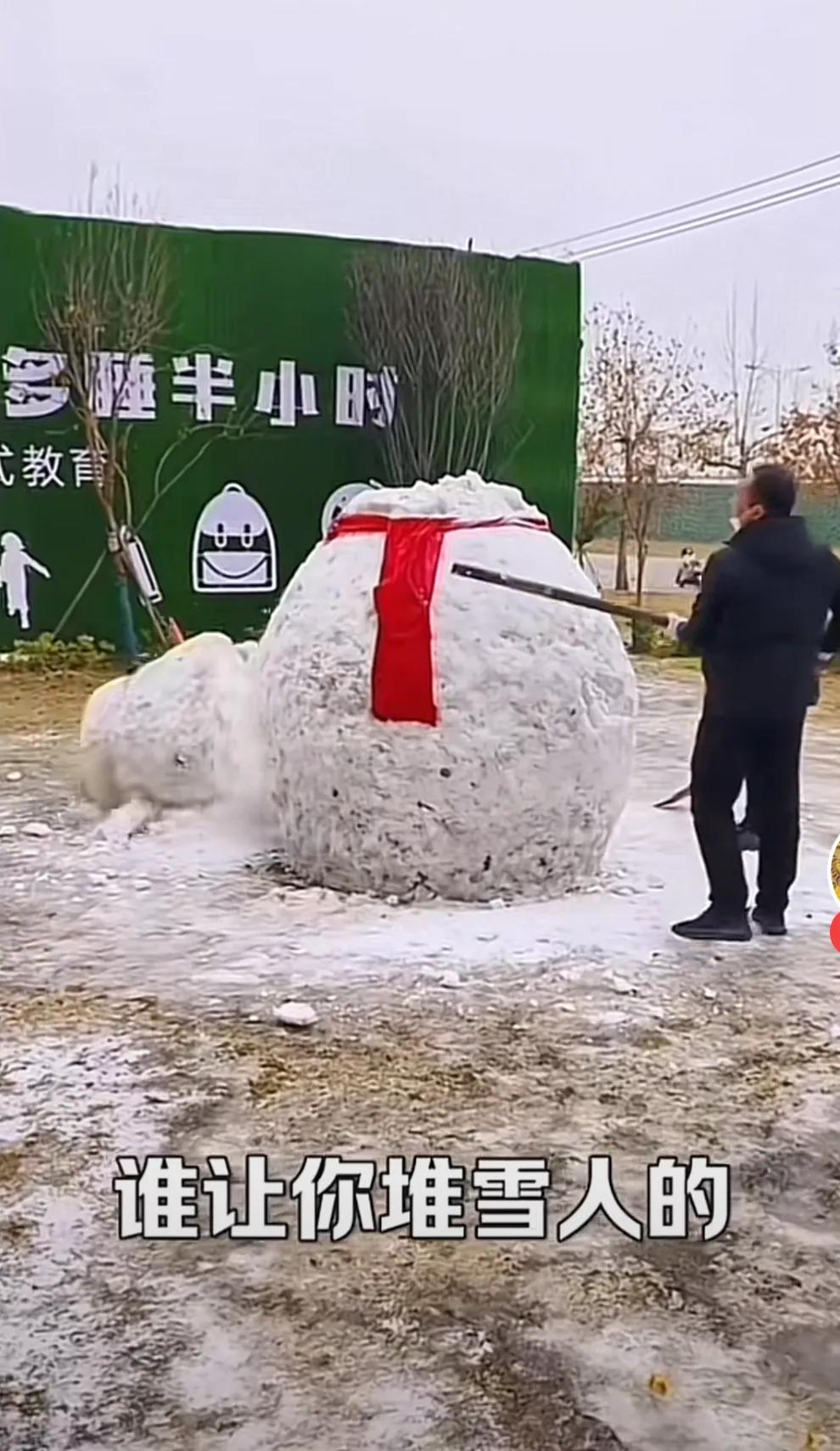 寒冬腊月,有人在路边做了一个漂亮的雪人,还给雪人戴上了一个红色的围脖,吸引着路人跟他合影拍照。 但是就是这样一个大家喜爱的雪人娃娃,却有人看着不顺眼,最终还是找来了木棍和铁铲,将雪人彻底毁掉。 对此,简直让人无法理喻,这种人是怎样的一种心态,连一个雪人都无法容忍,其内心深处有多么的阴暗。