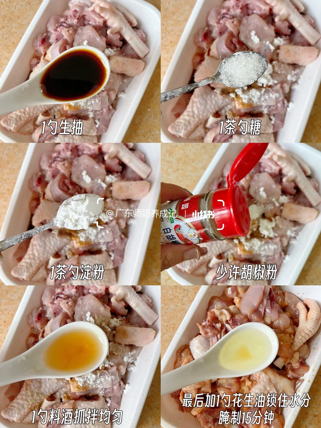 1⃣生蚝用淀粉抓洗干净待用,鸡肉参考图片腌制