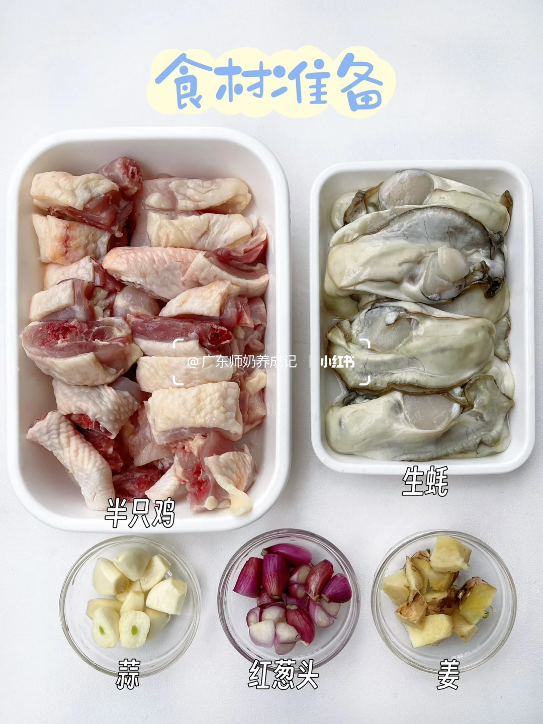 📝【食材】:鸡,生蚝,姜蒜,红葱头