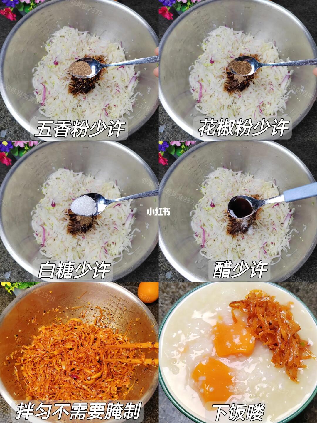✨通过加盐除水的萝卜丝,脆嫩入味,现吃现做,很方便。对于腌制品,大家都懂的,这个做法,不需要腌制过夜,相对来说要健康很多……