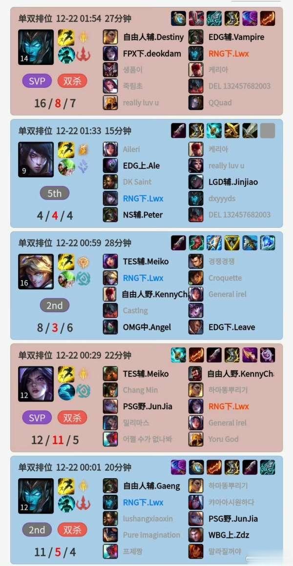 lwx韩服杀鸡直接16连胜!