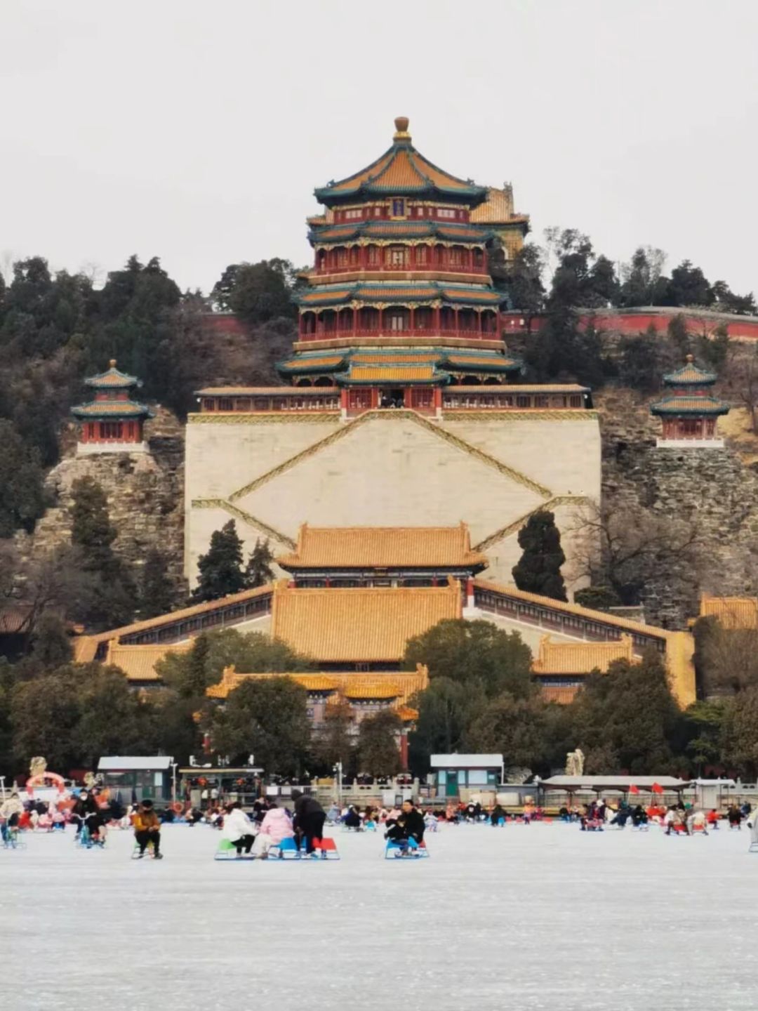 🥰在皇家园林颐和园,如果有比雪景更值得期待的,那一定是滑冰了❗️