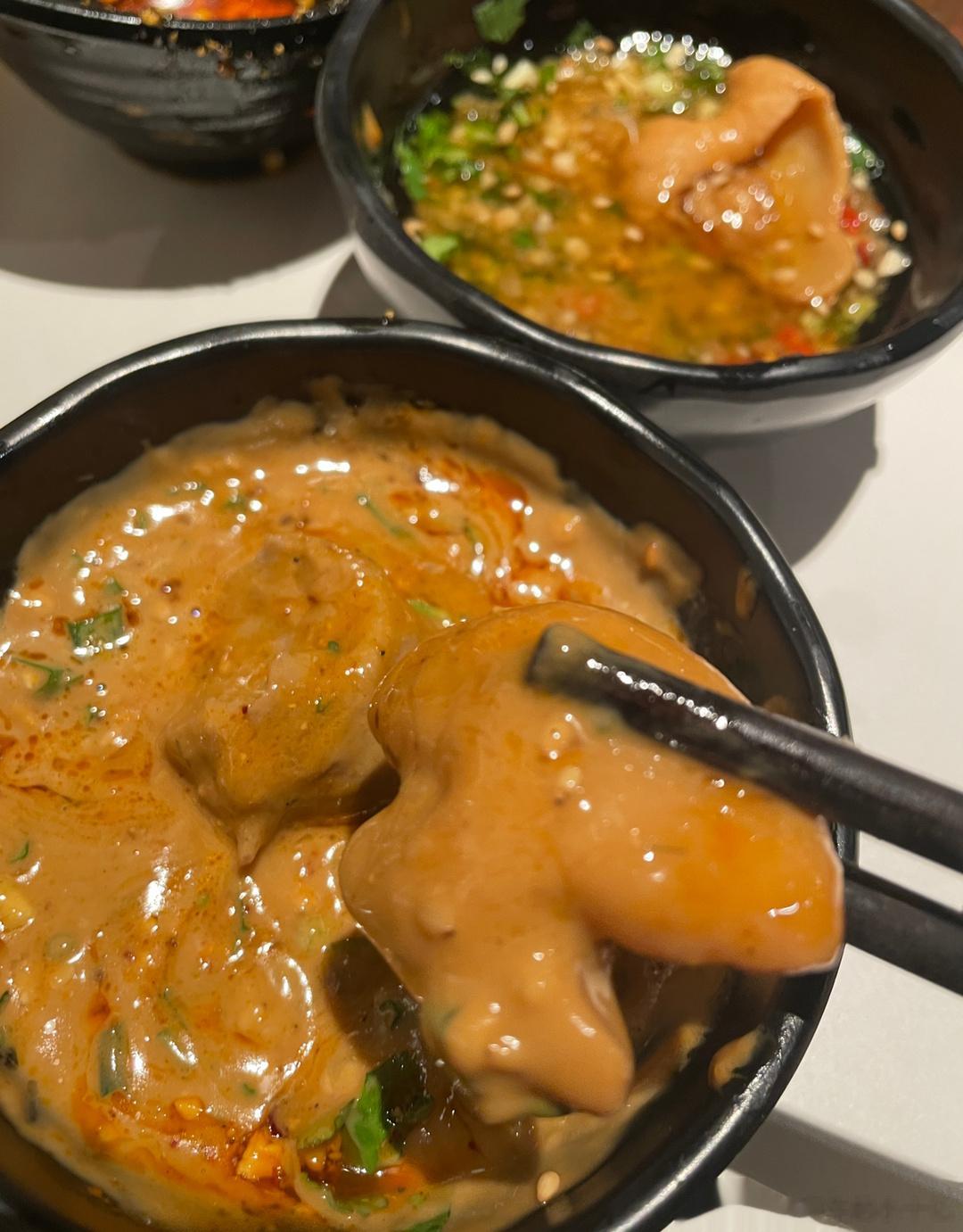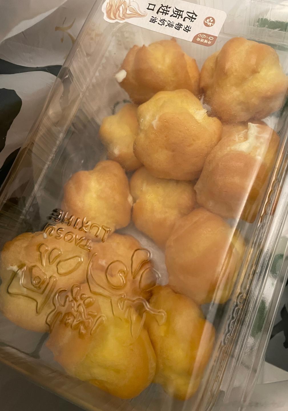 等炸串的时候,他说去厕所,结果是去提前排号了,看到了我喜欢的泡芙店,就一起给我买了泡芙,这家店的海盐芝士麻薯我很喜欢吃,冰过的泡芙也喜欢~他跑着回来(怕我等太久,同时也是因为拿了我爱吃的东西,想快点给我,早一秒让我快乐对于他来说也是幸福~)