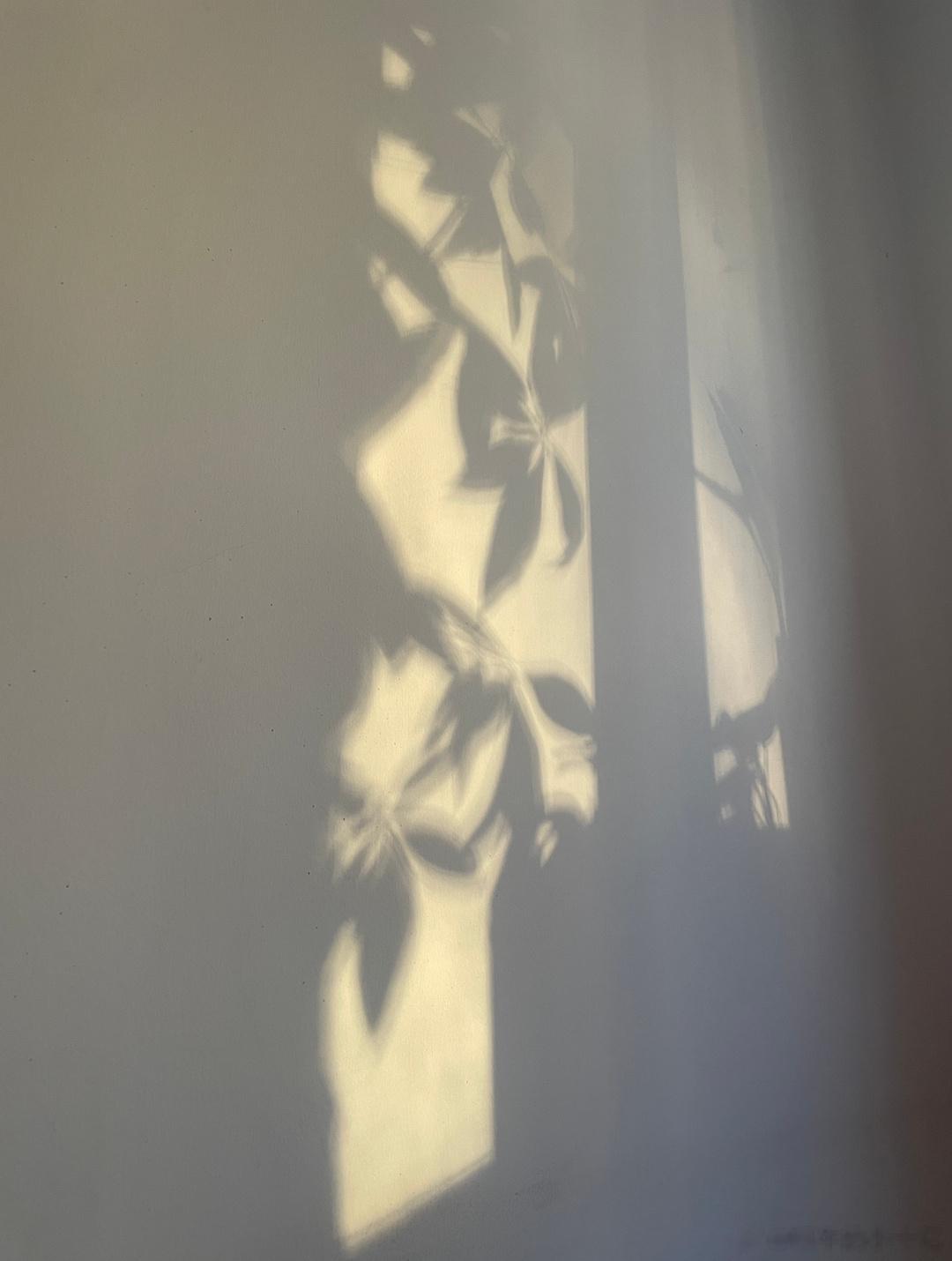 周五晚上去了妈妈家,睡醒发现阳光打在墙上,妈妈种的“不知道什么花”🌸映在墙上好美,我俩和妈妈一起吃火锅🍲,因为爸爸在忙所以没带他,哈哈~