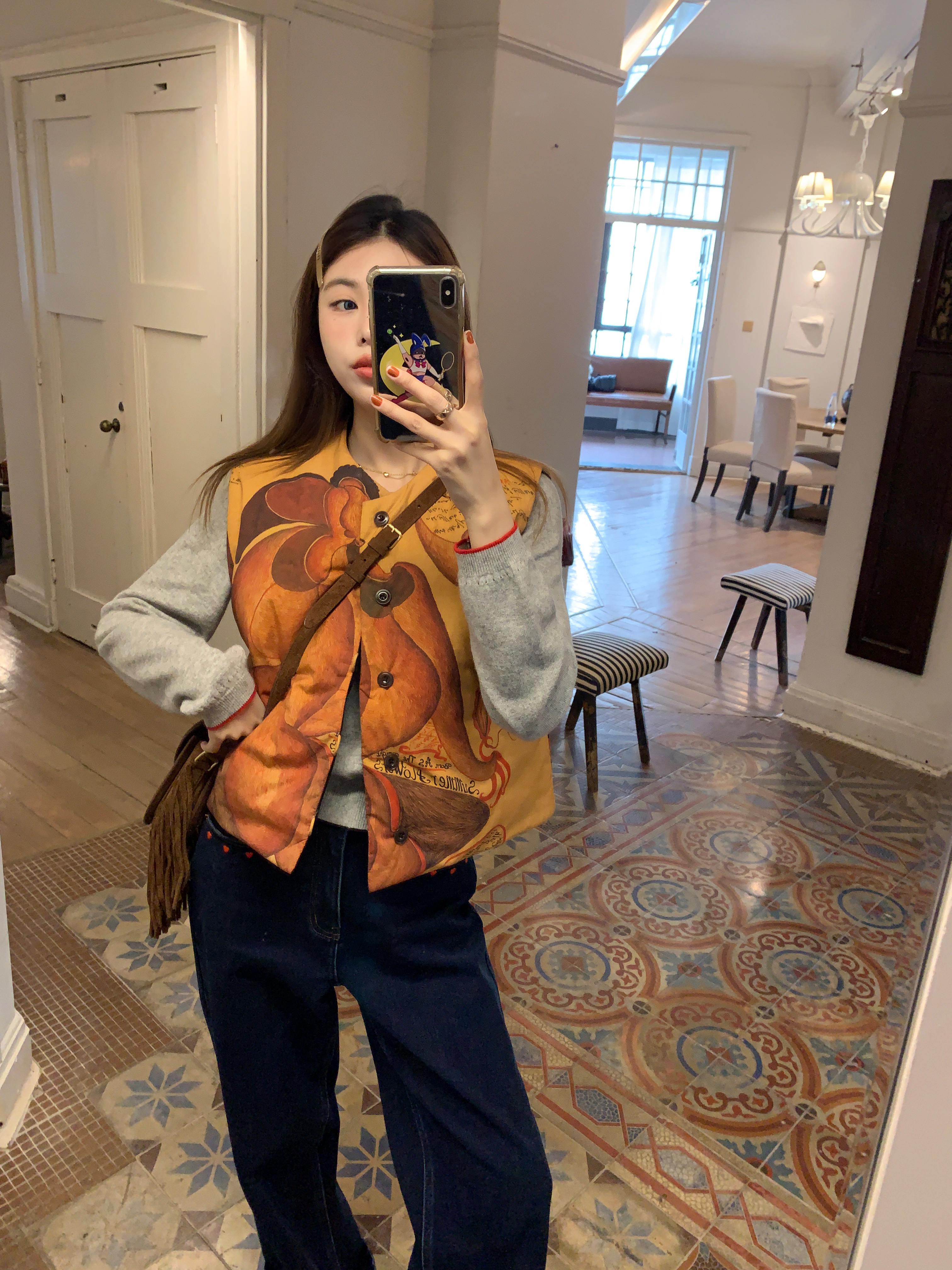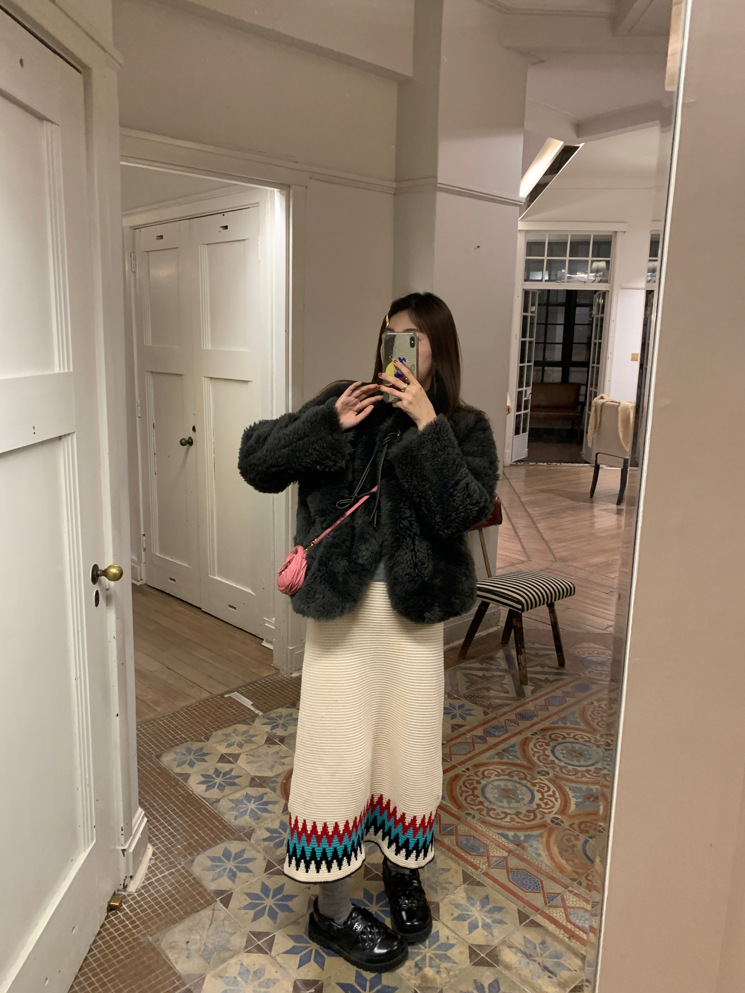很少见到复古独特的皮毛一体 这件狠狠爱住了西班牙进口美丽诺羊毛 很重磅拼接工艺