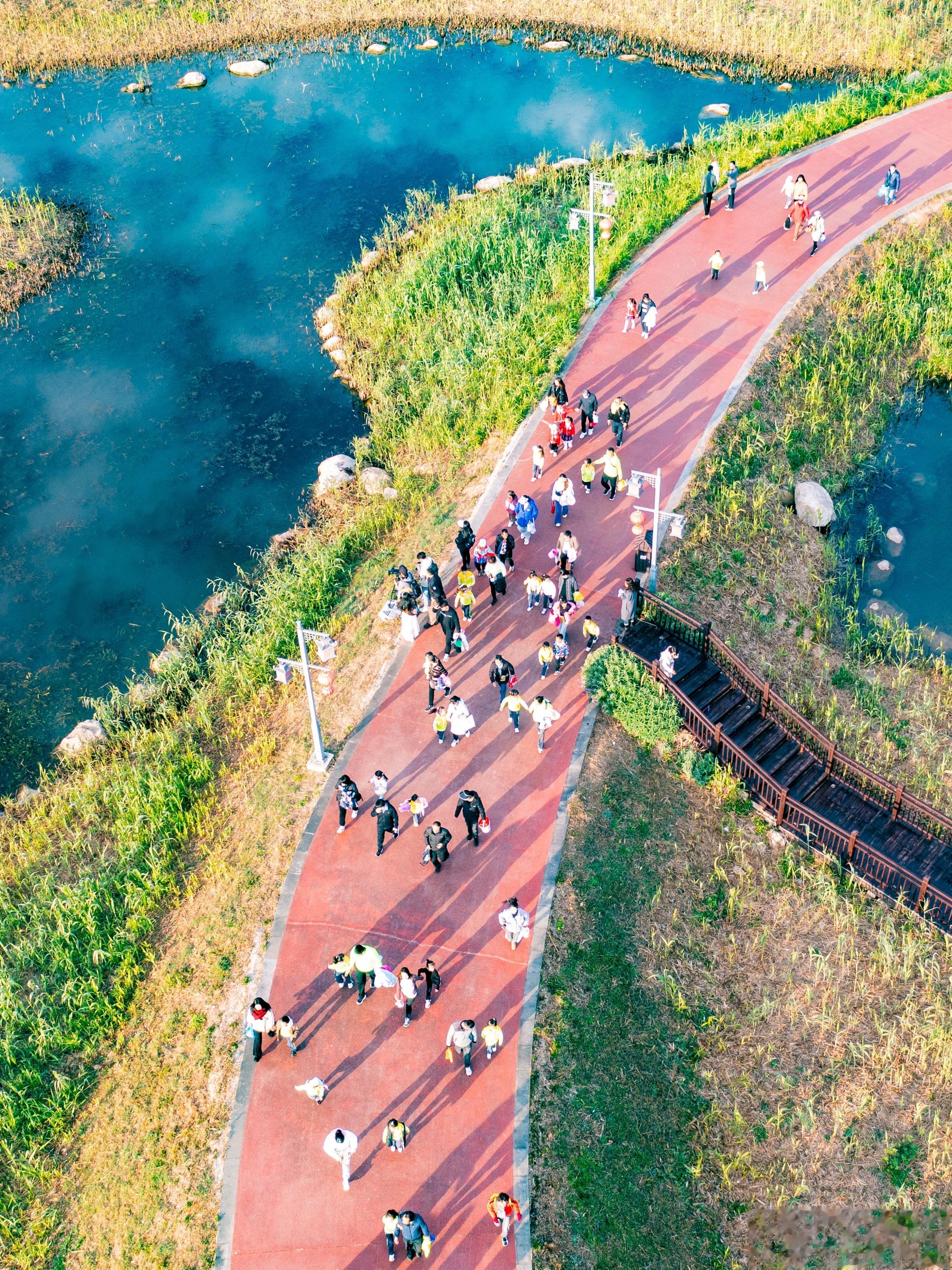 在保山市的青华海景区,我看到了蓝天白云下,人与自然和谐共处的景象。同时这里的步道修的格外的好,很多跑友在这里慢跑,令我十分羡慕。