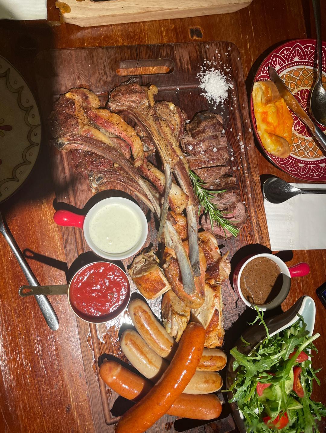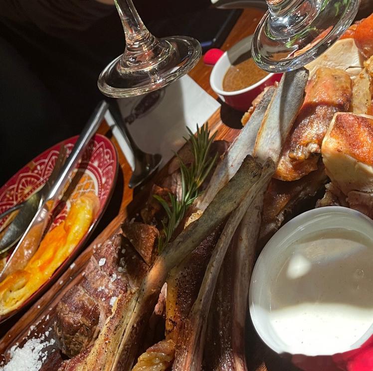 昨天他忙了一天,饭都没顾上吃,但是我快下班他就出发来接我,我一下班他就已经在门口等我了,我们开车了去了第一个餐厅,不上烤盘了~然后他又带我去了备选餐厅~