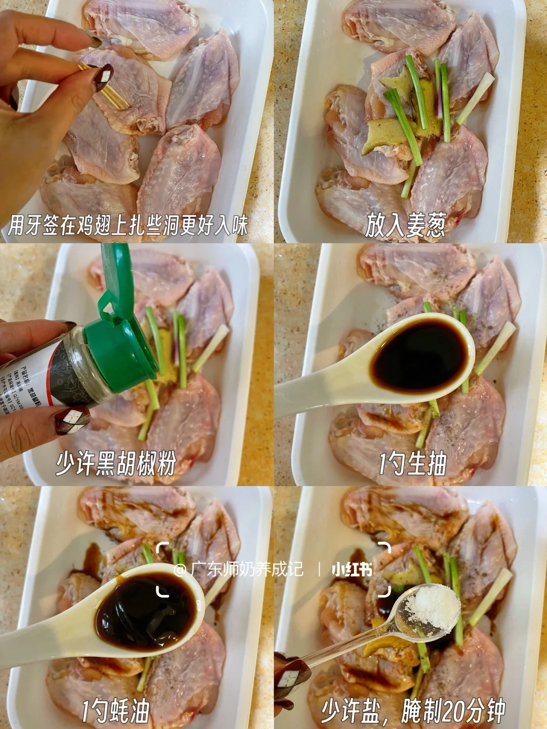 1️⃣鸡翅用牙签戳些洞洞,更好入味,参考图片腌制