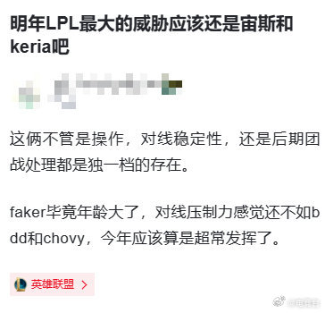 网友热议:明年LPL最大的威胁应该还是宙斯和keria吧?
