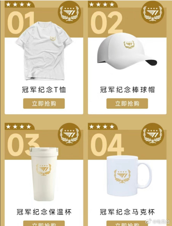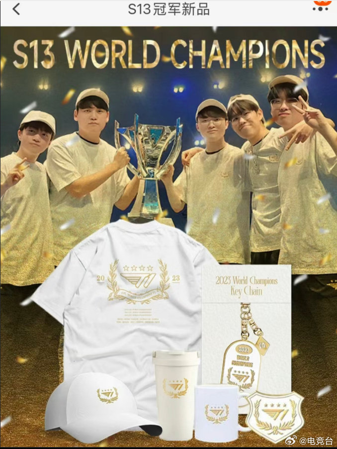 这次的T1发布出来了关于周边的款式,可以看到衣服帽子杯子都有,而且还是烫金工艺!