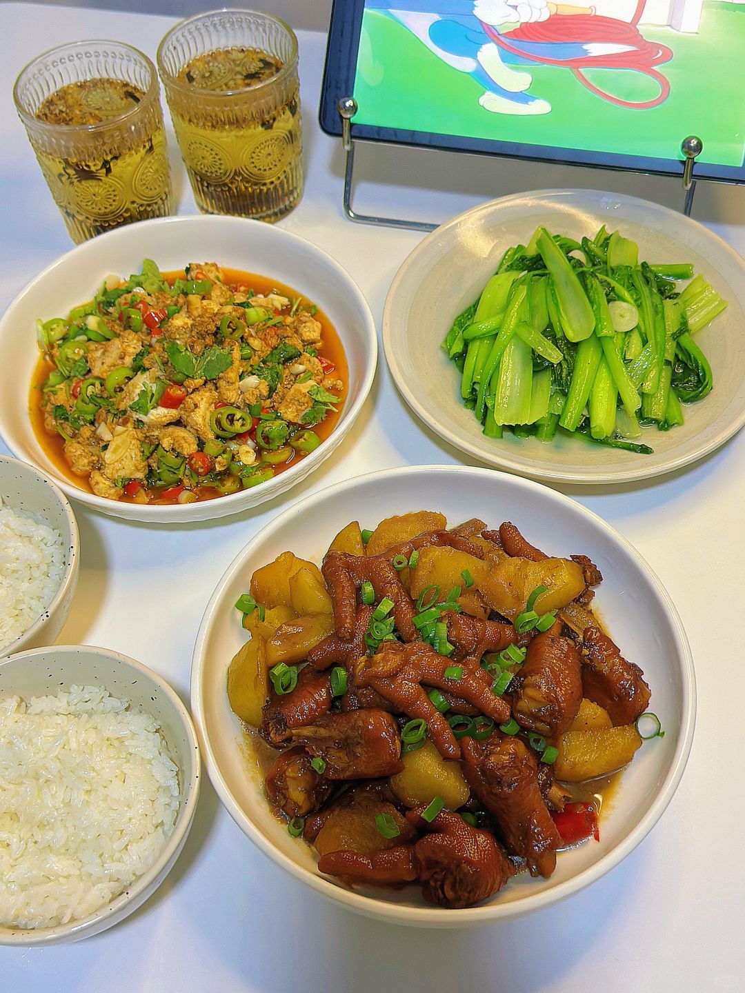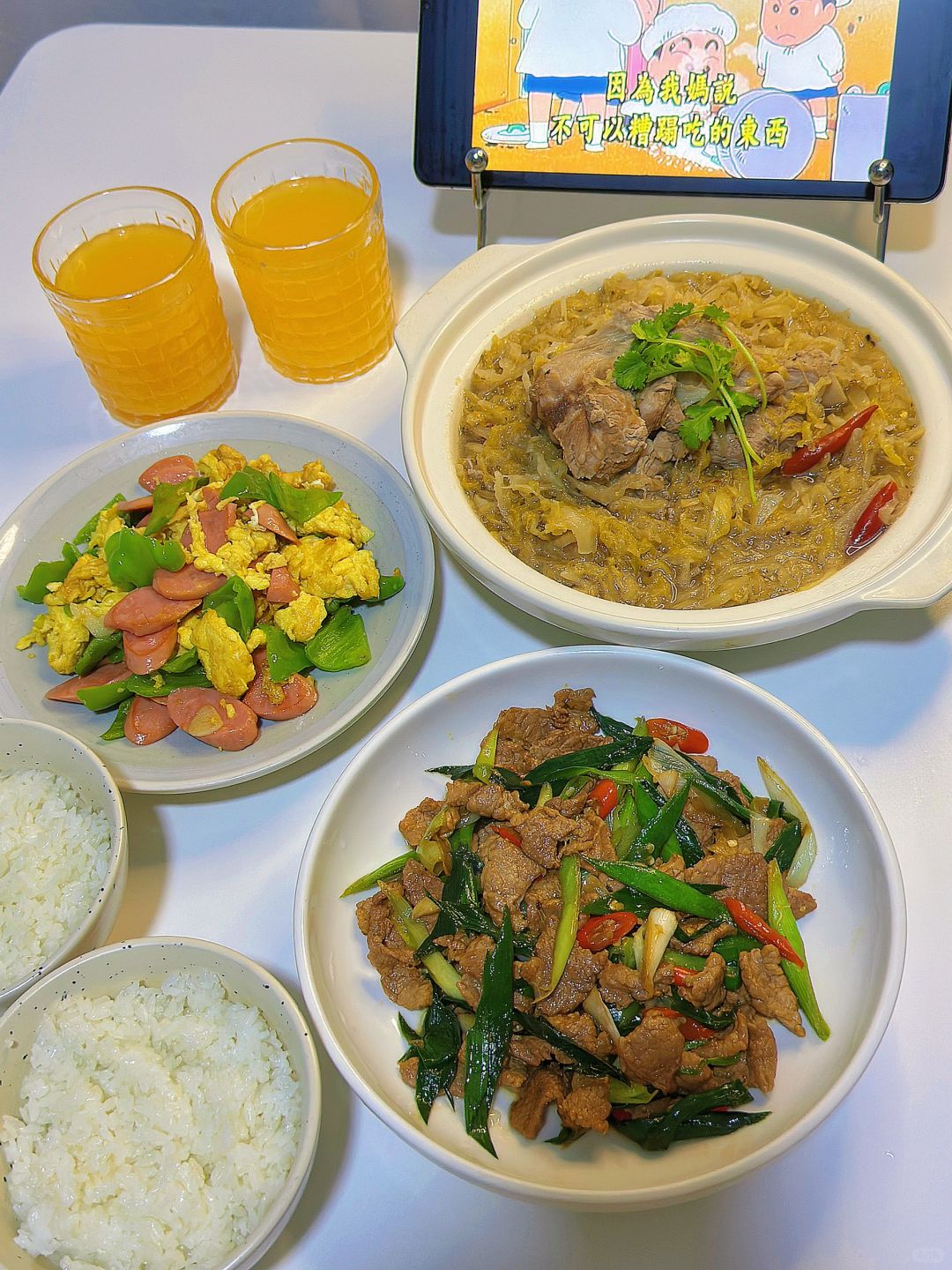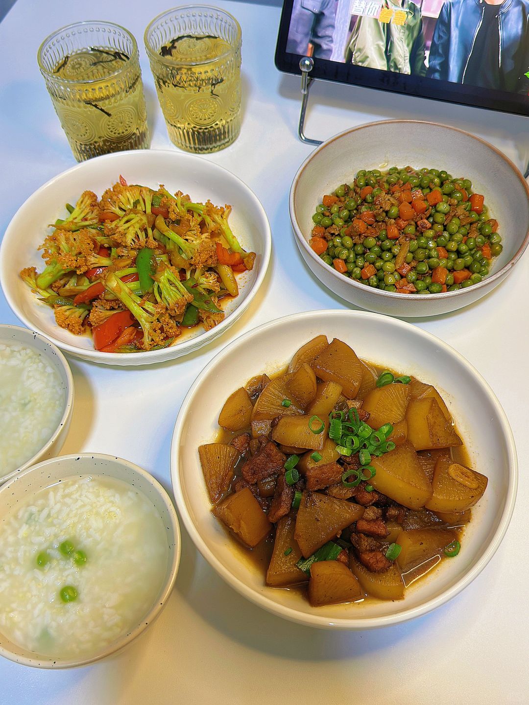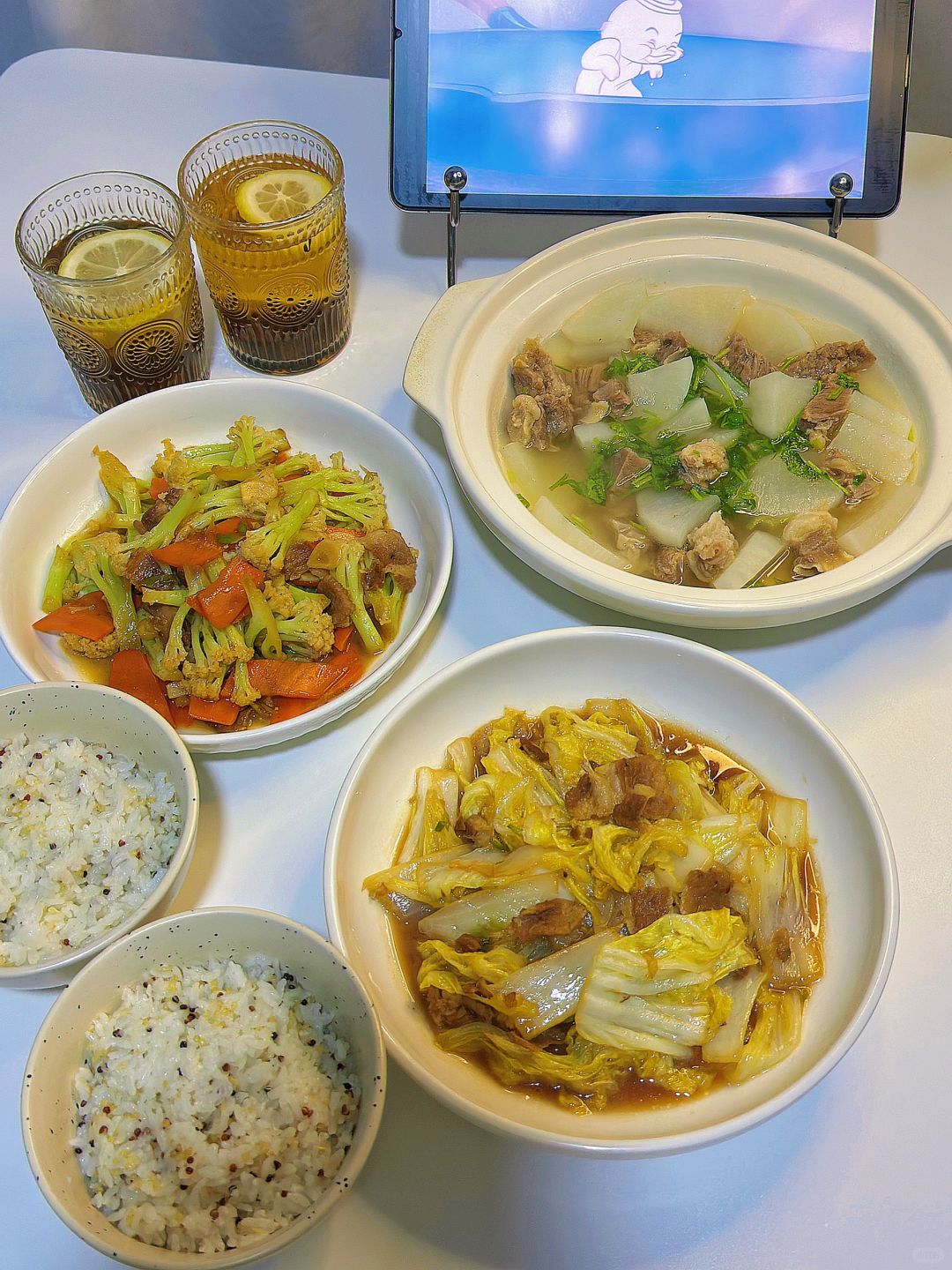 给大家整理了一周晚饭合集✨ 每道菜都有详细的教程🥘 希望能给大家带来做饭的灵感✨ 大家可以翻之前的笔记🎉 好好吃饭哟~💕💕 1️⃣五花肉炒藕片➕蒜苔炒鸡蛋➕榨菜肉丝 2️⃣五花肉烧萝卜➕干锅菜花➕肉沫豌豆 3️⃣鸡爪烧土豆➕酱豆腐➕清炒白菜 4️⃣萝卜牛腩汤➕菜花炒肉➕五花肉炒白菜 5️⃣辣炒猪耳朵➕豆芽炒韭菜➕香菇油菜 6️⃣鸡公煲➕手撕包菜➕饺子 7️⃣酸菜炖筒骨➕蒜苗炒肉➕青椒火腿鸡蛋