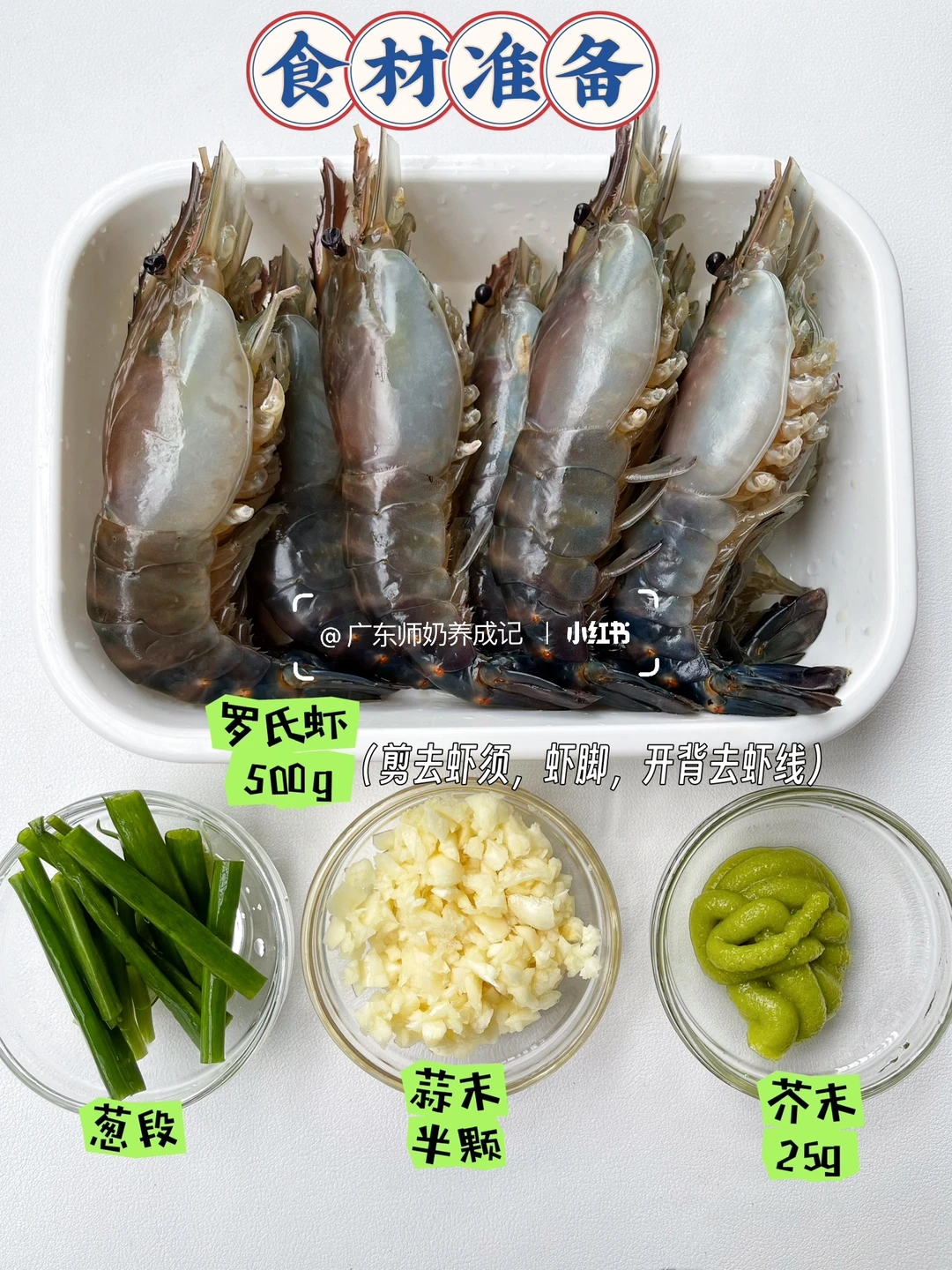 罗氏虾500g,芥末25g,大蒜半颗,葱