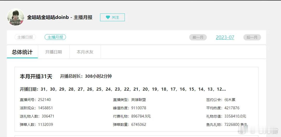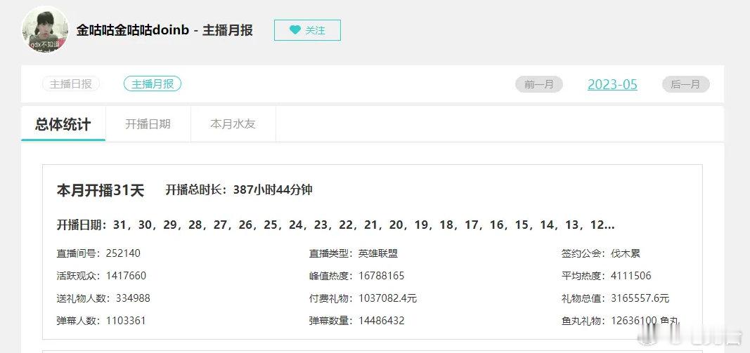 Doinb 2023年全年直播流水数据一览!将近八位数!