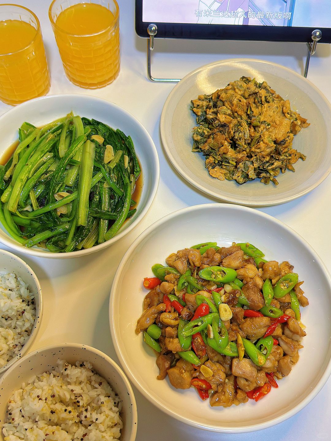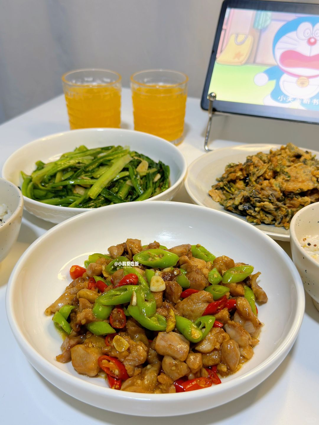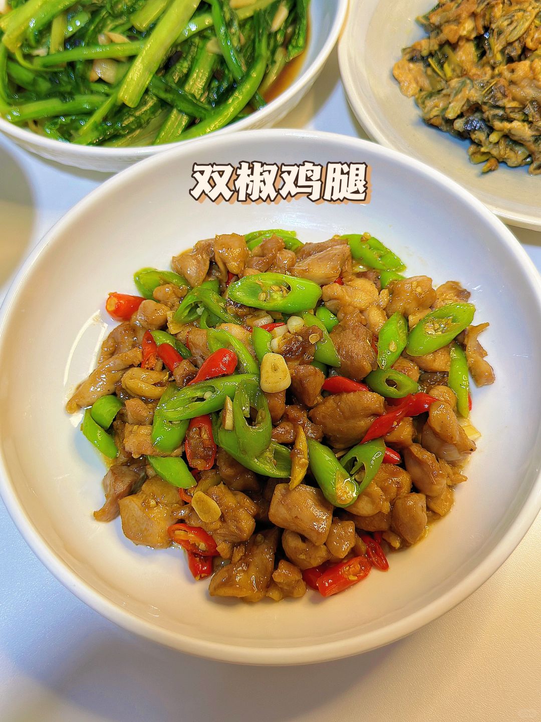 🎊鸡腿腌制之后煎的嫩嫩的,辣椒辣度刚刚好,简直太下饭了!油麦菜这样炒鲜甜鲜甜的,太好吃了~ 🌈今日菜单: 1️⃣双椒鸡腿 2️⃣香椿鸡蛋 3️⃣豆豉油麦菜