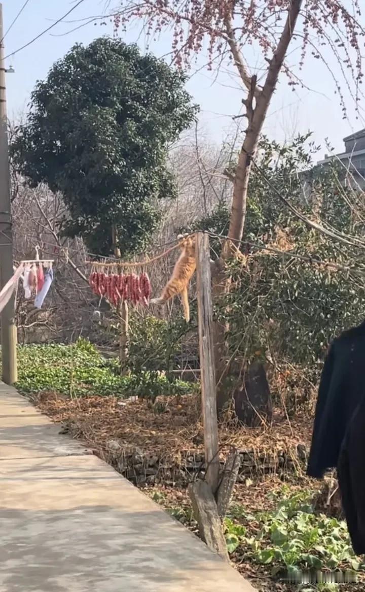 小猫:大白天敢把香肠放这,不怕被偷了,今天高低要给你个教训