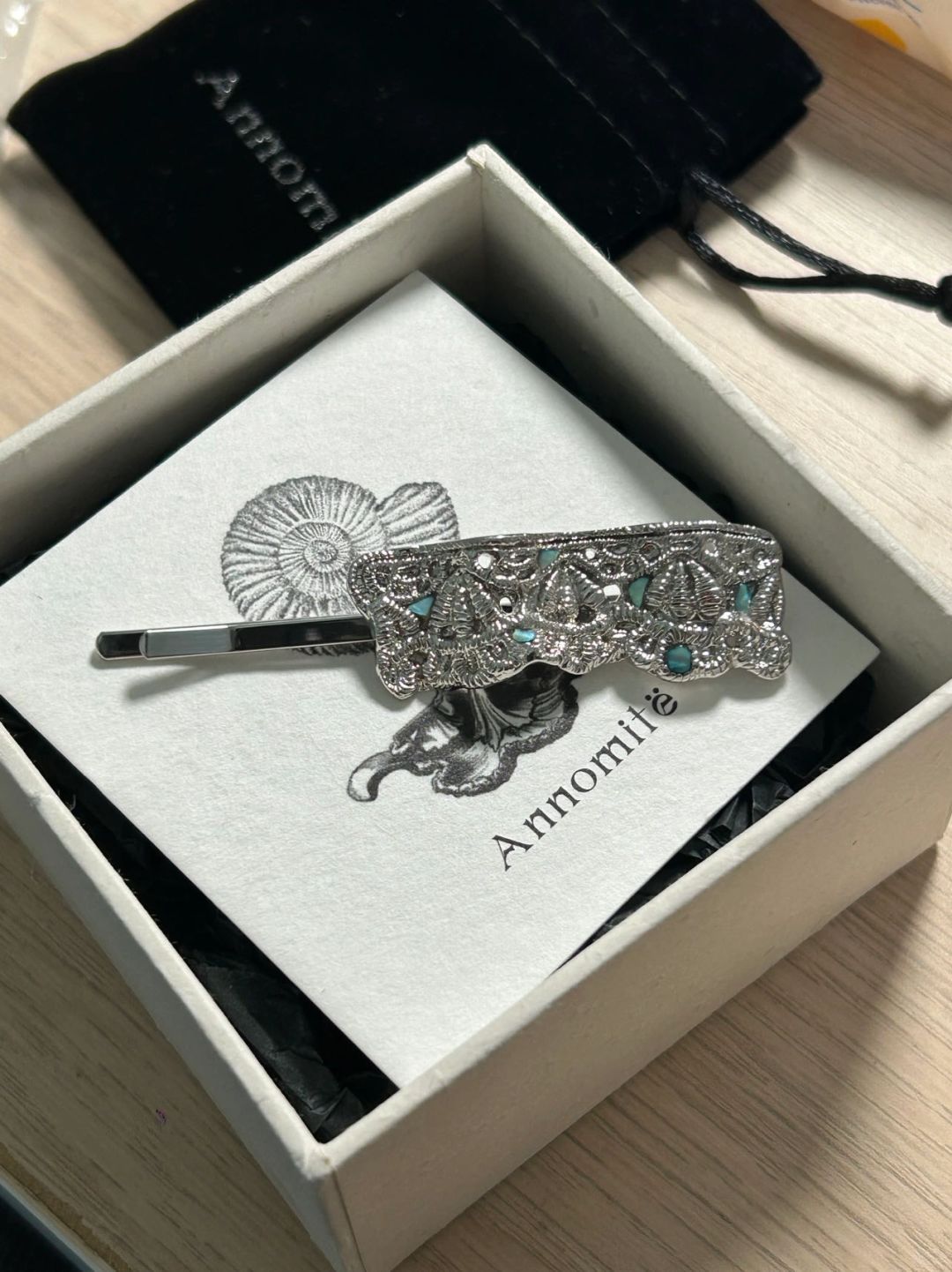 很喜欢用不同的材质,表现固定材质的东西 这个发卡是银制的,但是是蕾丝的样式 拍4可以看出来还有镶嵌的小宝石💎 近期最爱发卡出现了🥰