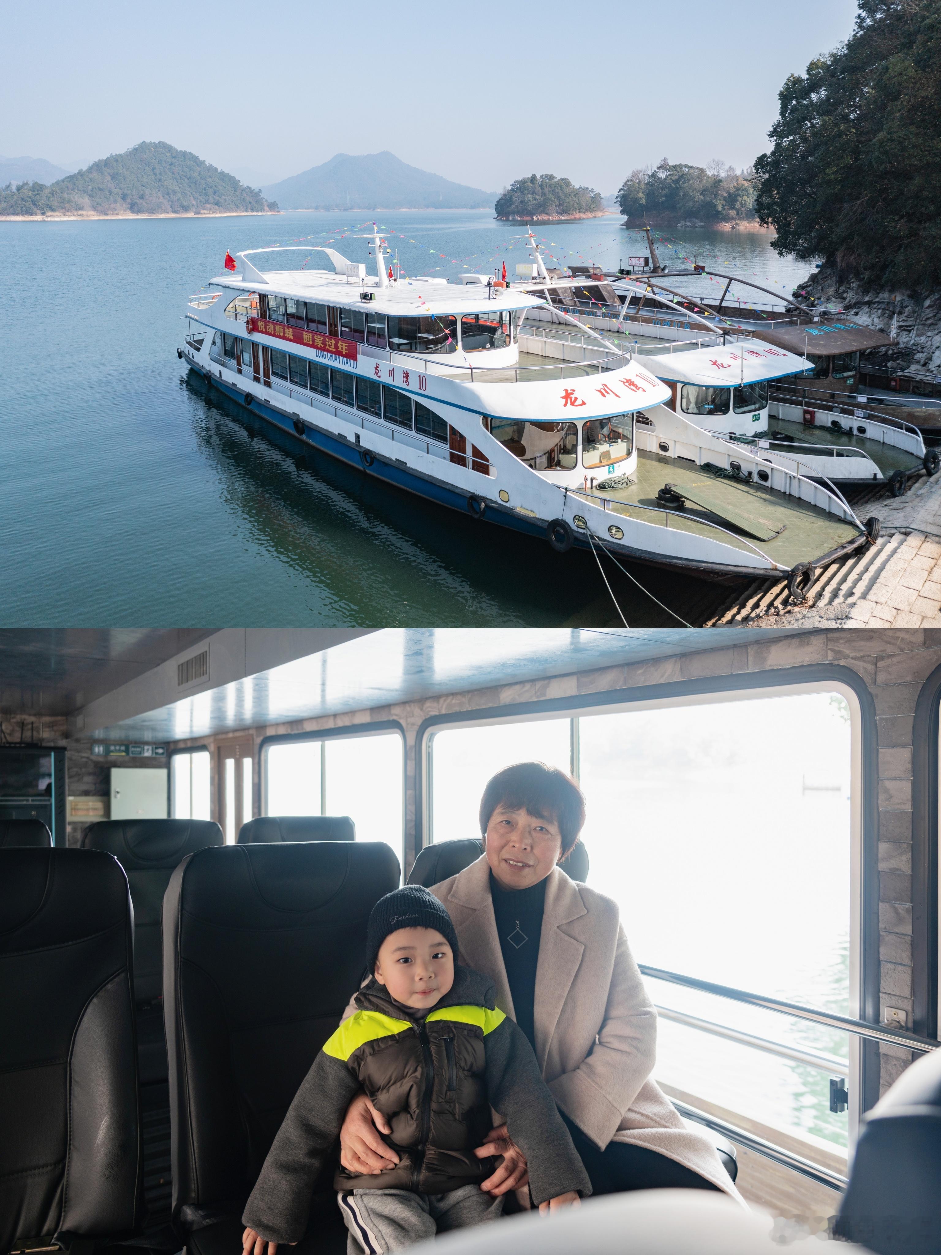 🛥乘船游湖是来千岛湖不可错过的体验。云开雾散时,小葫芦念叨了两天的游船总于圆梦,在奶奶身边格外乖巧。