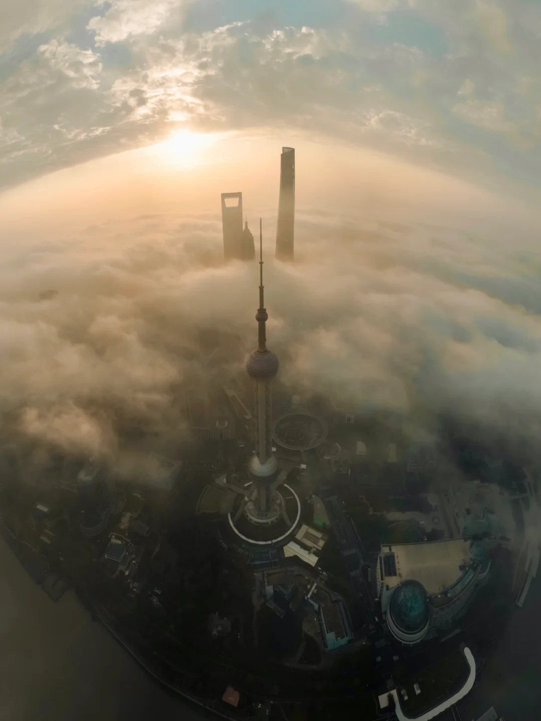 我是几奈,坐标上海 的90后摄影博主 迎接2024年的日出平流雾在魔都出现 整座城市都仿佛云端一般非常魔幻 · ☁️平流雾形成条件: 1.暖湿空气与地表产生较大的温差 2.地表水汽严重形成大雾在低空中凝集 平流雾一般会在300米的高度 所以会形成云端城市的奇观 · 🚁拍摄方法: 使用无人机航拍最为理想 🙋🏻♂️航拍高度:500米 📍起飞地点:北外滩汉阳路(图7) 📸构图思路:将白玉兰作为前景 云海作为中景,三件套作为后景 层次叠加,光景交替非常好看 ·