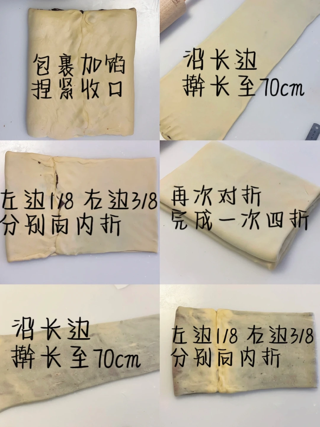 📎操作请充分撒干粉,保证面团在擀开时可以在操作台上自由滑动