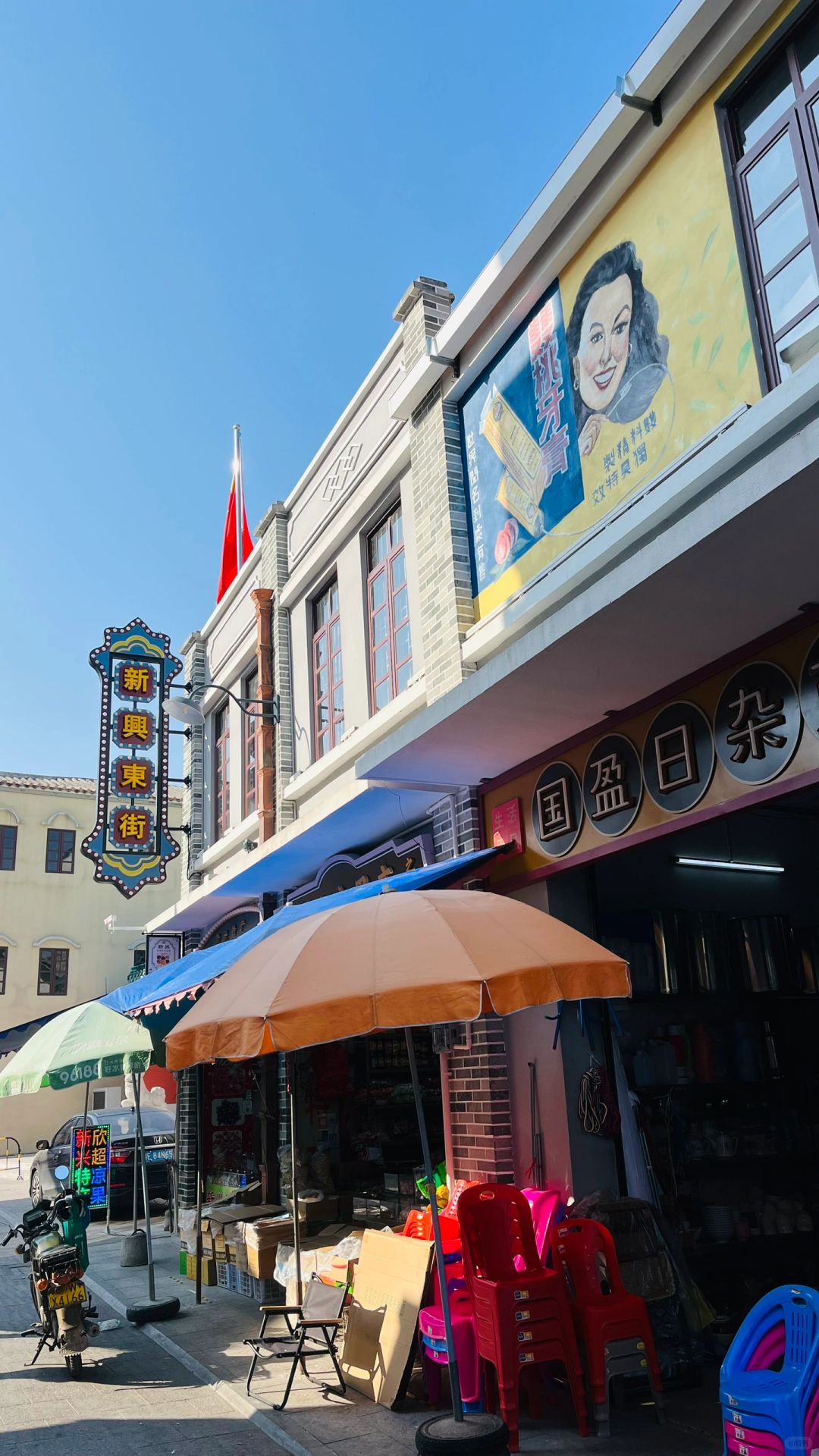 游走新兴老街,这里有老牌的干果店和糖饼厂,老街道风格是民歌时代的骑楼式的街道设计,已有百年历史。