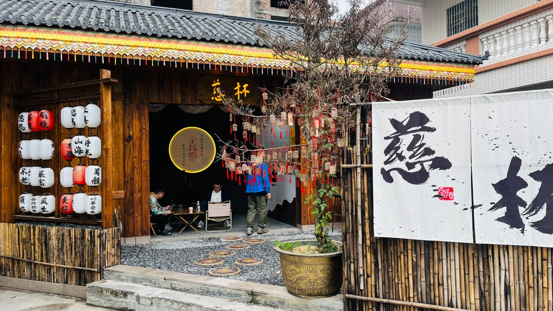 打开慈杯咖啡,这是一家开在寺庙旁的特色咖啡,环境清静,设计很特别,在这里躺上一两个小时也是非常舒服的。