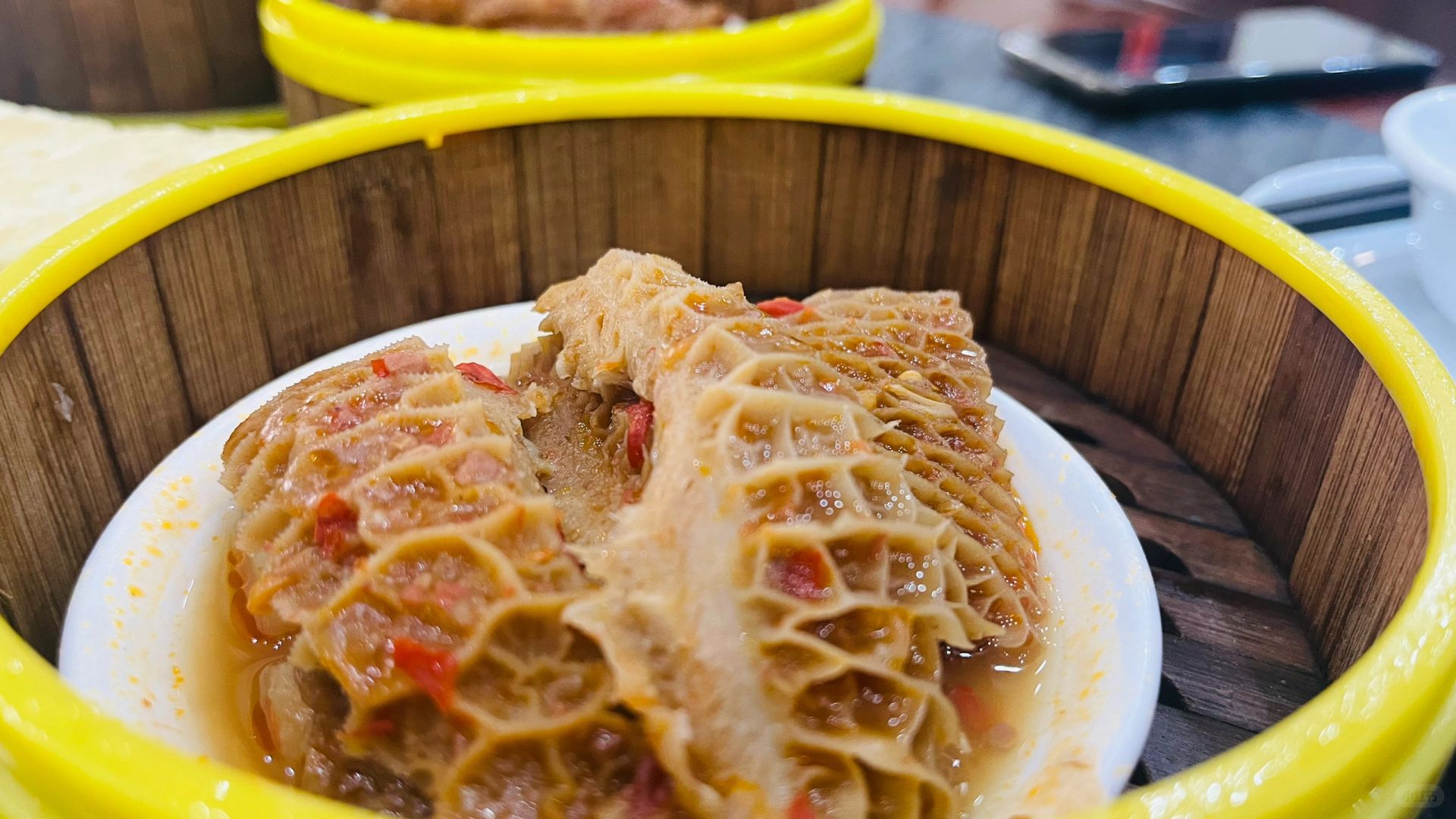 牛一泥焗鸡,走进厨房能看到每一只鸡都是现焗现斯的,保持原汁原味送到食客的桌上,这里还有推荐他们的烧肉,皮脆肉嫩,值得一试。