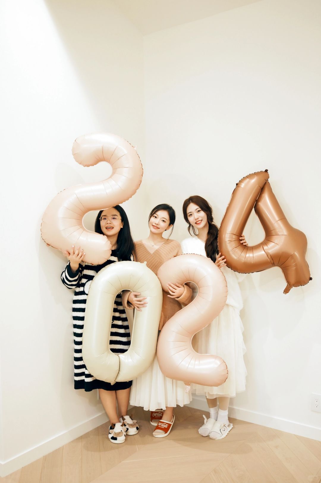 和姐妹们一起拍2024新年照片也太开心啦 📷 一面白墙+沙发+数字气球就够我们玩很久,吃完火锅我们轮流拍了两个小时哈哈哈!单人照互相拍,合照随机抓一位幸运家属来拍[大笑R] 拍完照片继续唱k,和微微一起重温了SHE的n首冷门歌曲,童年休眠的记忆开始攻击我[黄金薯R]用一个晚上验证了真的没有我们不会唱的SHE的歌,真爱粉认证✅ 本e人简直太喜欢这样的活动,整个人都快乐起来了!谢谢微微的邀请呀[萌萌哒R] —————— 希望2024年的我们就像照片里一样开开心 一切都顺利!!
