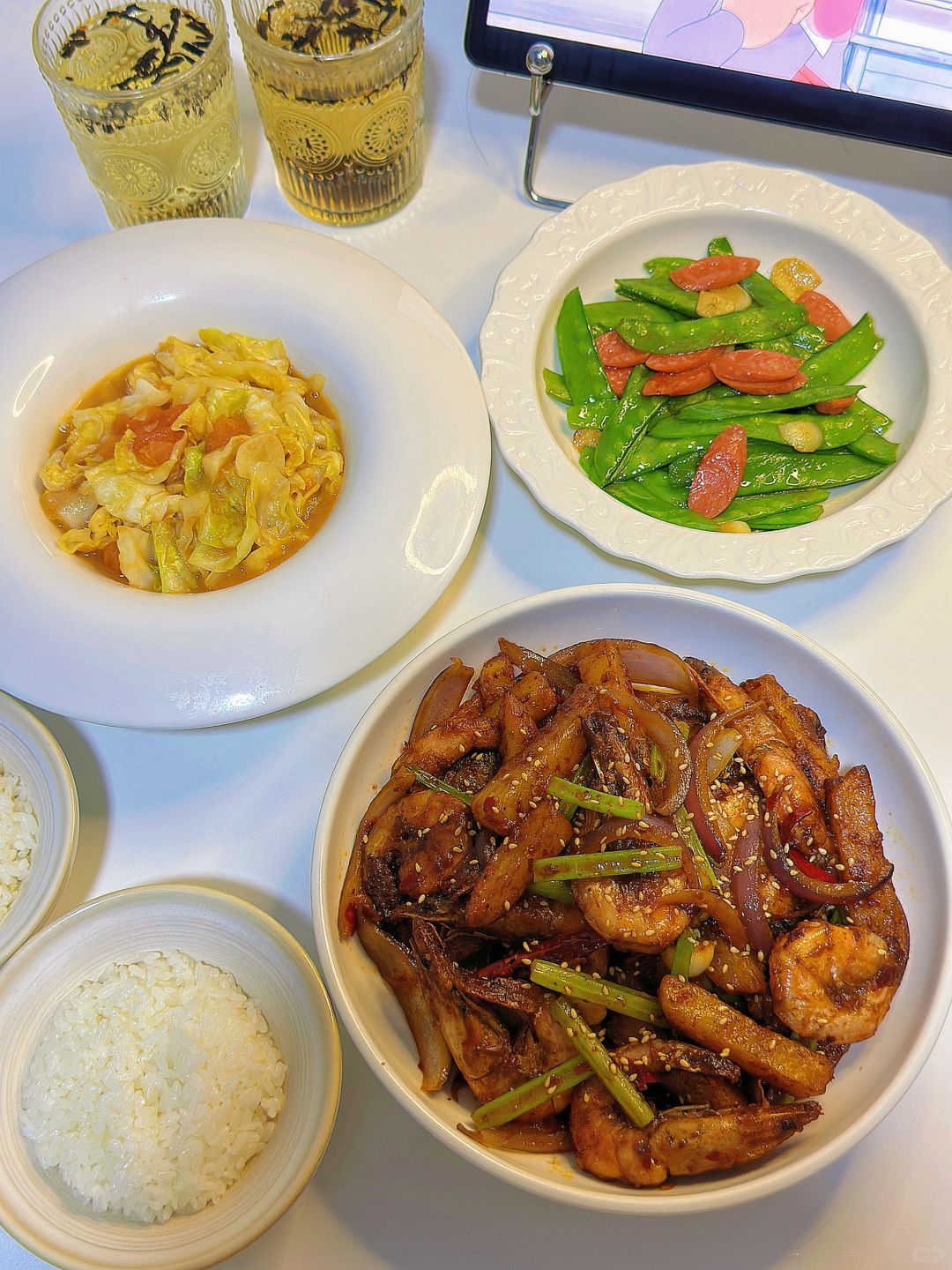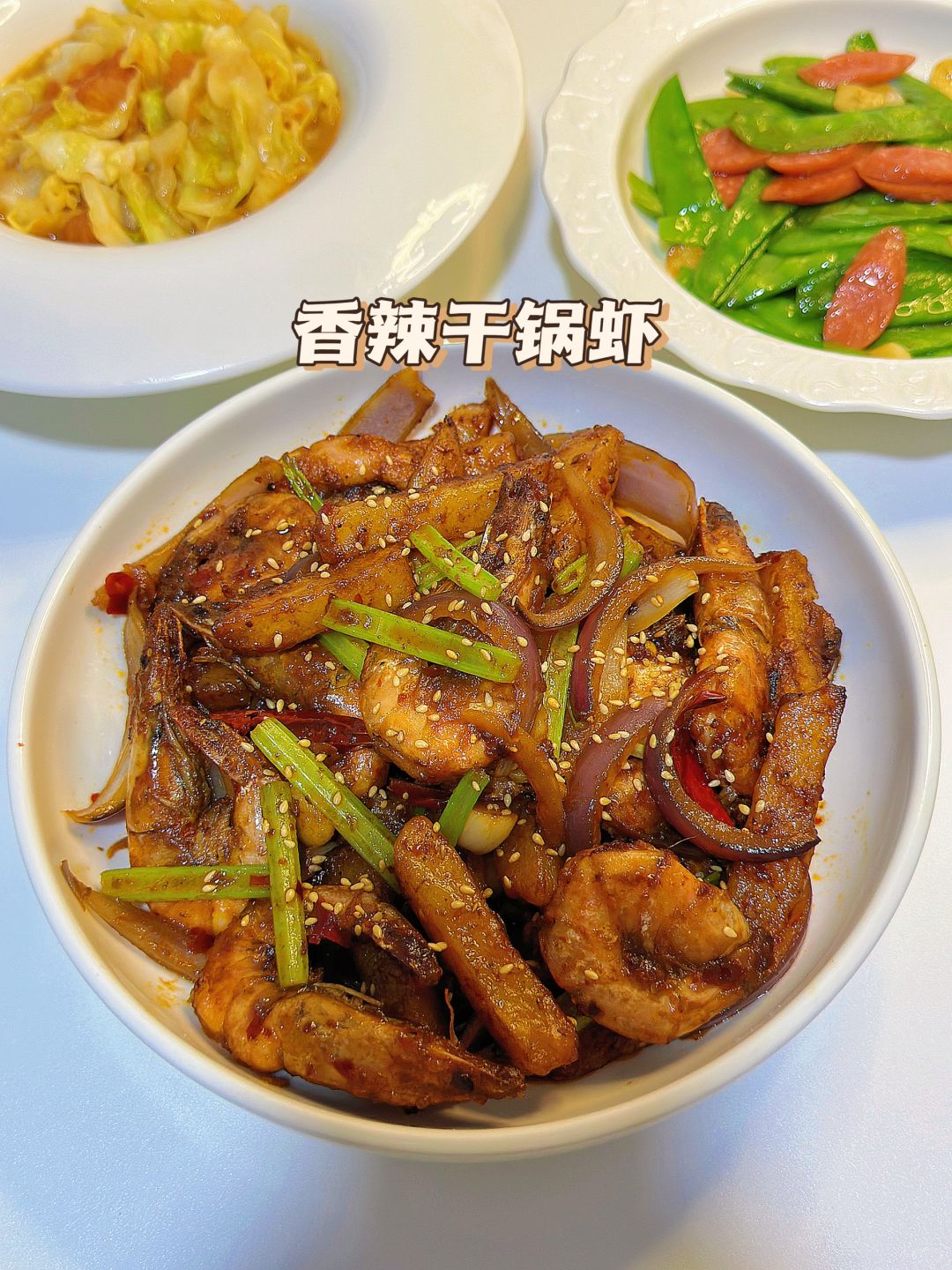 🎊香辣干锅虾太下饭啦!土豆软软糯糯,入口香辣绵软,比大虾还好吃,根本不够吃,茄子大头菜酸酸甜甜的超好吃~ 🌈今日菜单: 1️⃣香辣干锅虾 2️⃣香肠荷兰豆 3️⃣茄汁大头菜