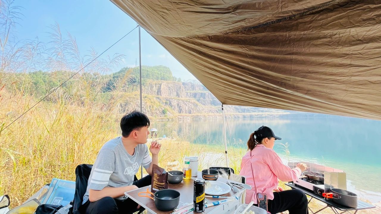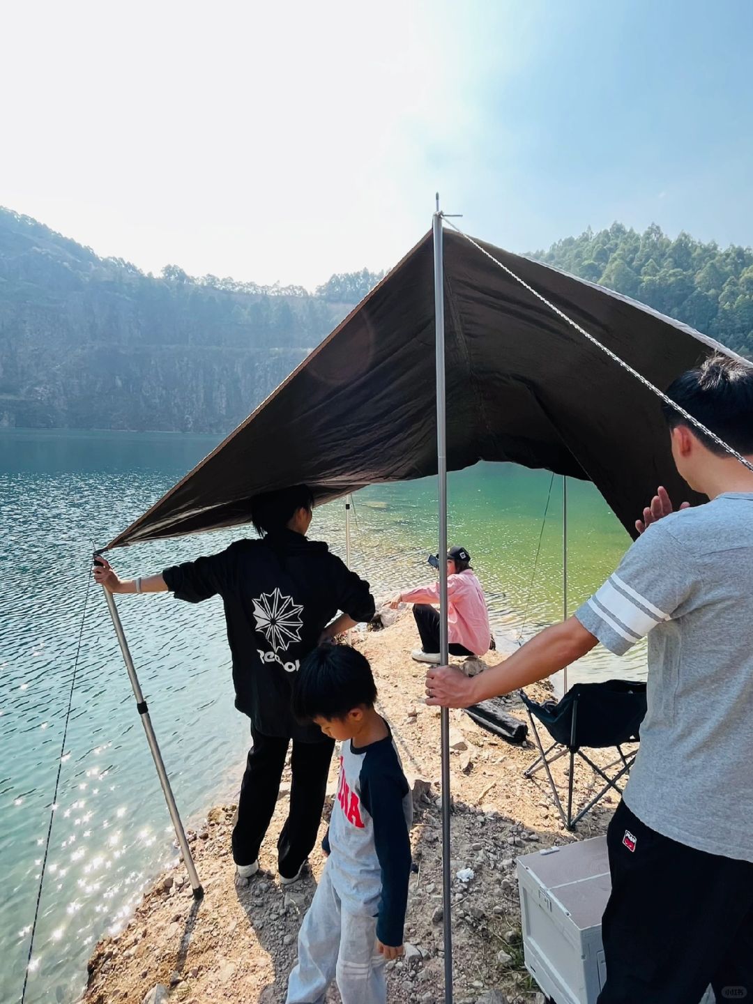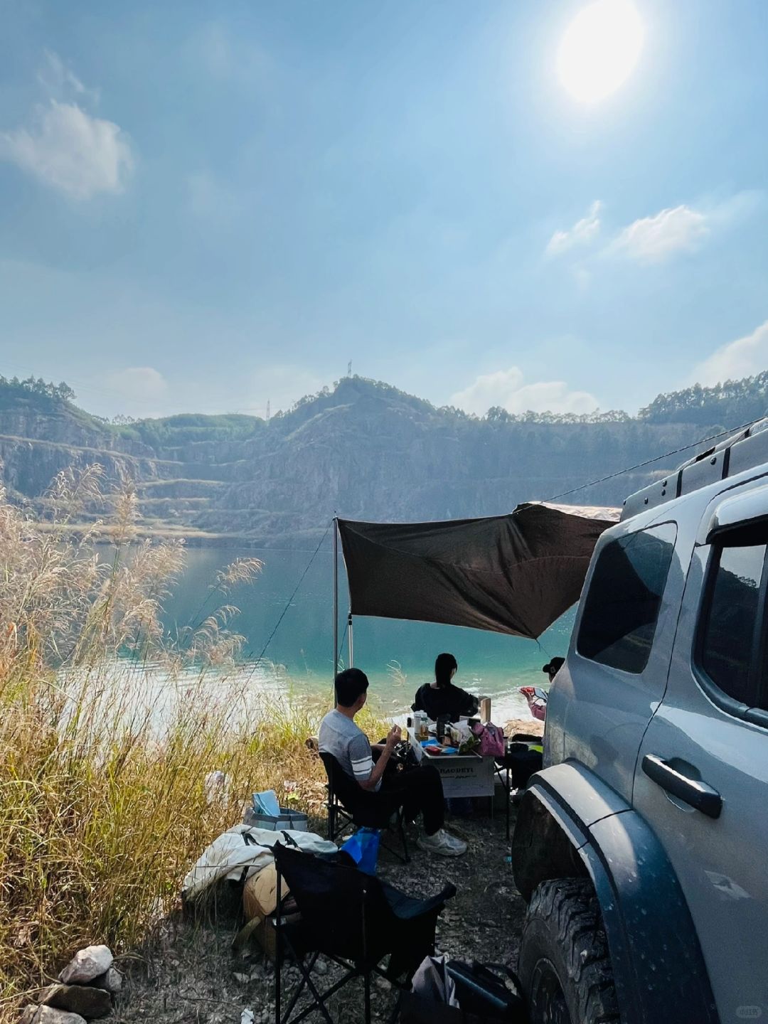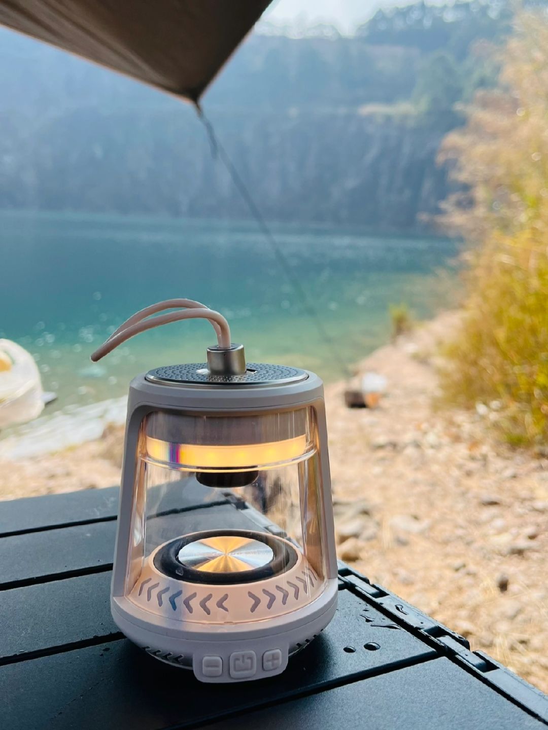 🏕️天坑位于花都和清远交界,广州天河开车出发1小时就能到达,这里人基本看不到太多人,只有附近少数的村民在这里钓鱼游泳,湖里的和虾多不胜数,随手捞都有河虾,大鱼成群游,还有本地村民会在湖里游泳,湖水清澈见底,在湖边喝着茶听着歌也是一个不错的享受,这次也带上银诺H6蓝牙音箱,他不止是音箱,还有露营灯功能 和磁吸,可以完美作为工具灯吸在车门照明。在深山幽谷中增加了不少氛围。