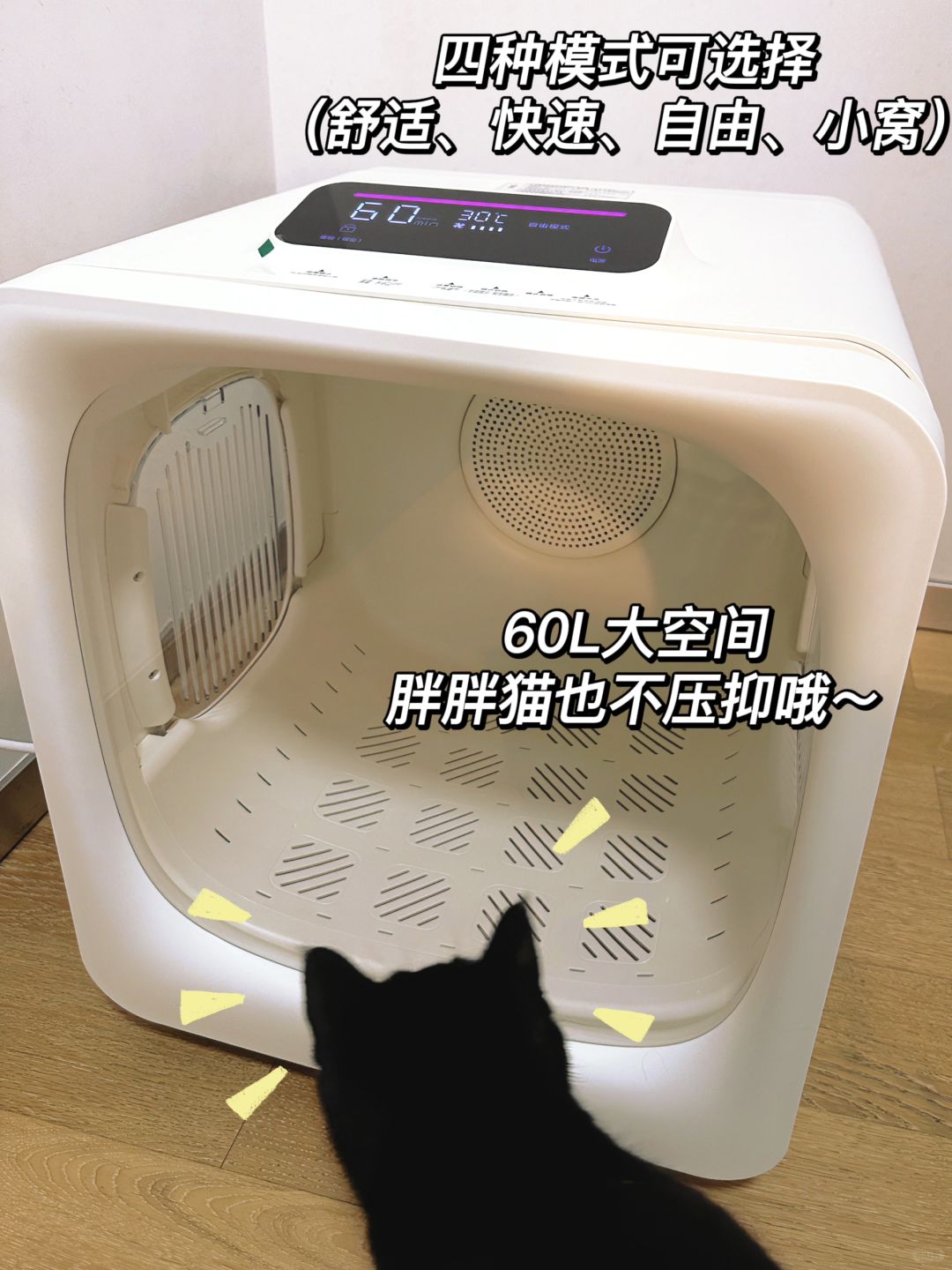 顺便小小惩罚一下关禁闭…开玩笑的啦,这款烘干机三面都能打开,前面有270°磁吸舱门设计,超大视野窗,两侧有推拉式撸撸窗能伸手进去安抚宝宝,甚至能和小猫咪玩玩具哦~