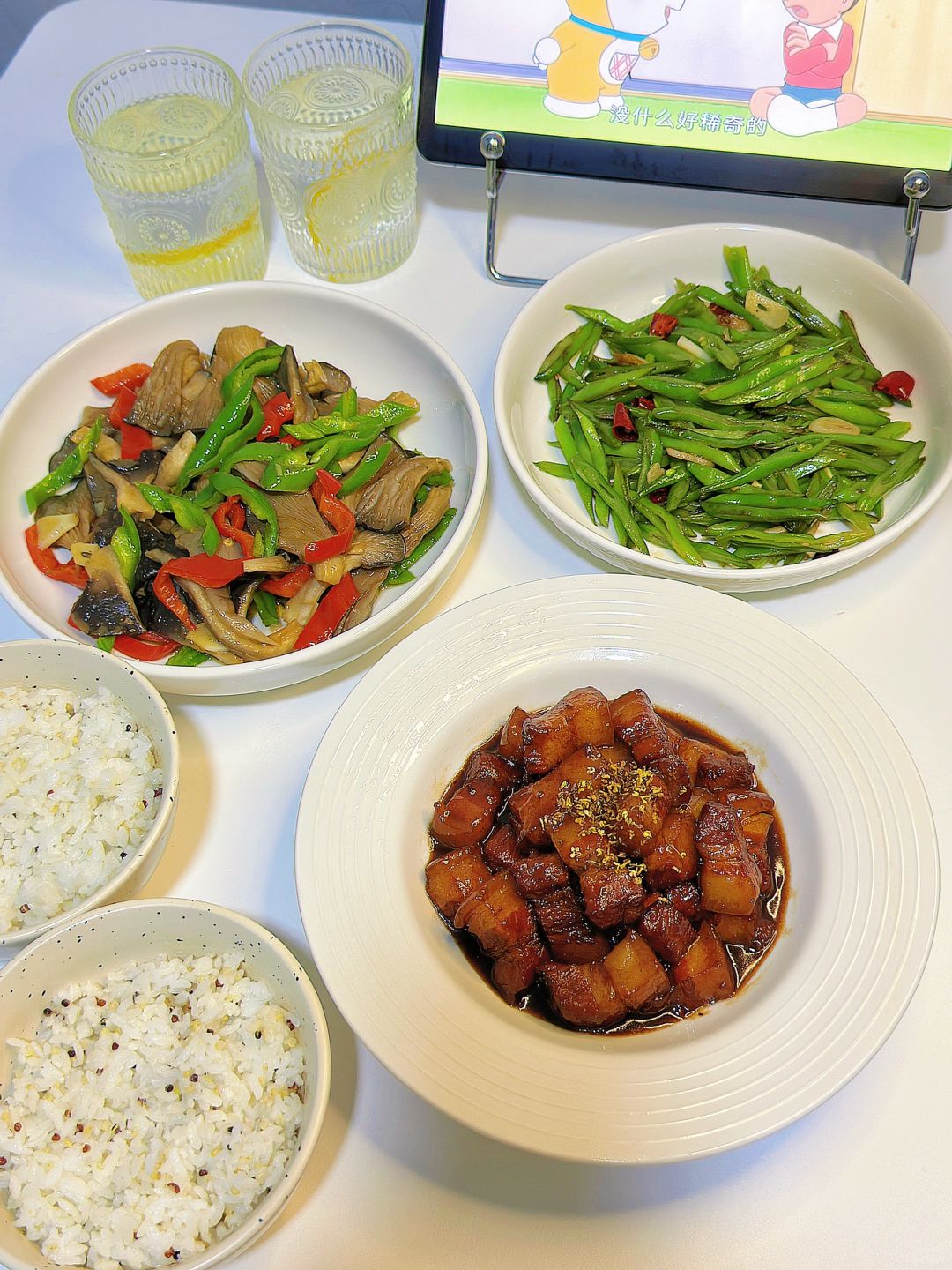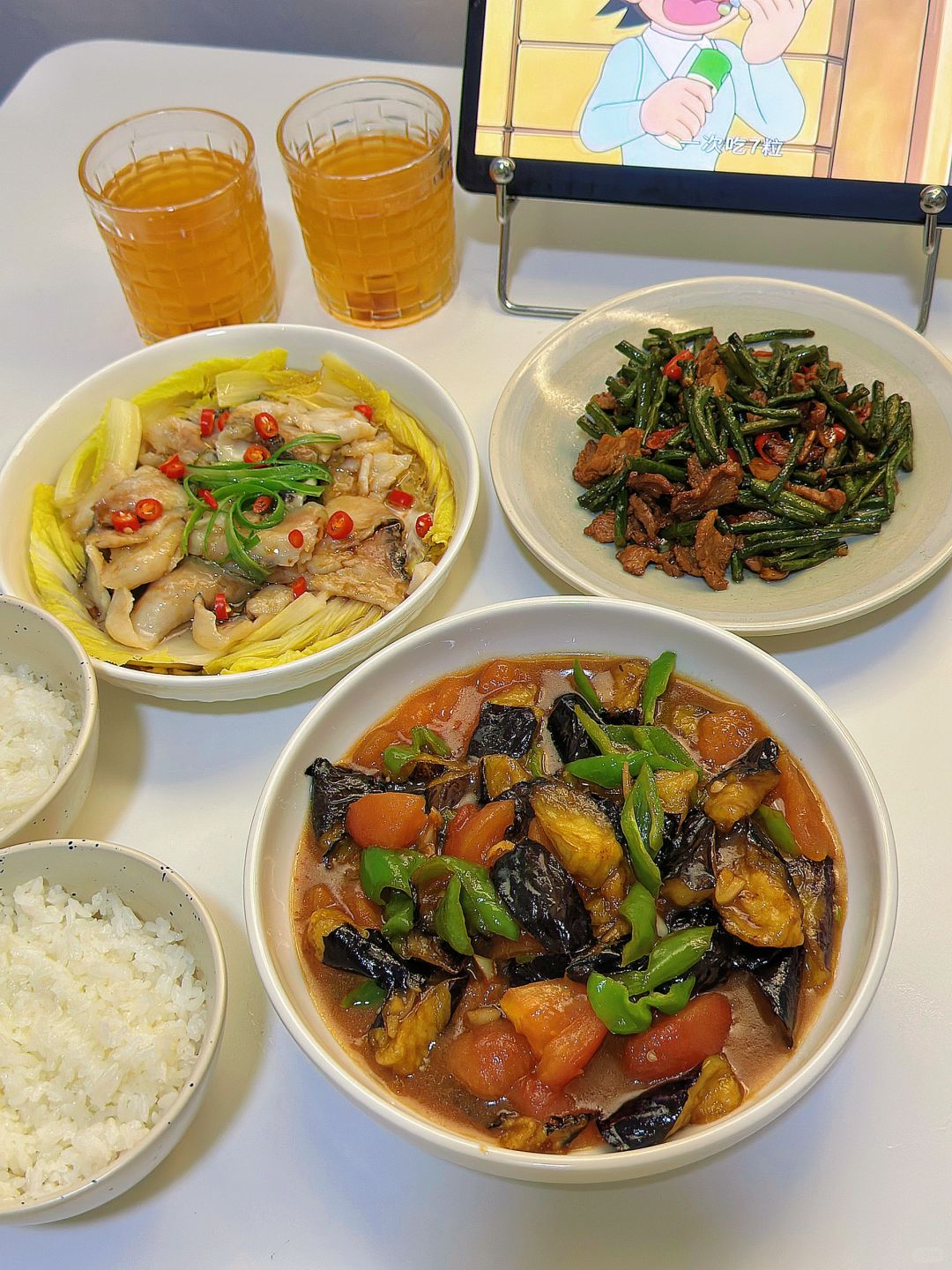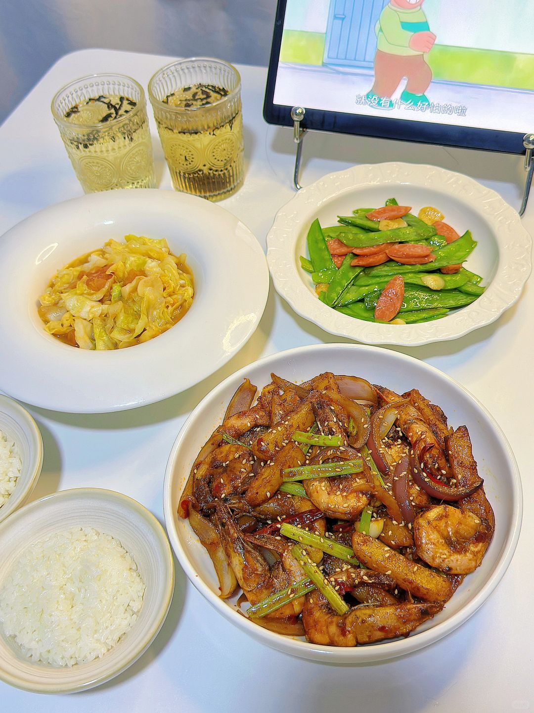 给大家整理了一周晚饭合集✨ 每道菜都有详细的教程🥘 希望能给大家带来做饭的灵感✨ 大家可以翻之前的笔记🎉 好好吃饭哟~💕💕 1️⃣辣炒鱿鱼丝➕肉沫豆腐➕酸辣土豆丝 2️⃣烧茄子➕葱油鱼片➕豆角炒肉 3️⃣鱼香肉丝➕酸辣娃娃菜➕豆豉茼蒿 4️⃣麻酱拌肥牛➕西红柿炒鸡蛋➕蒜蓉菠菜 5️⃣双椒鸡腿➕香椿鸡蛋➕豆豉油麦菜 6️⃣红烧肉➕素炒鲜蘑➕素炒豆角丝 7️⃣香辣干锅虾➕香肠荷兰豆➕茄汁大头菜
