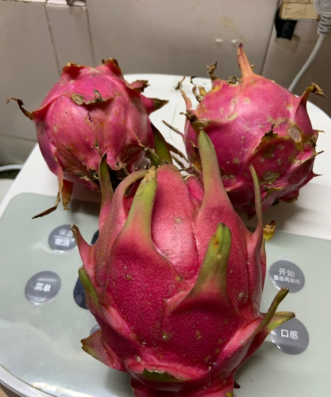 一看就是北方地区,我们南方沿海这里的火龙果随便一个都是比这个大多了。我见过每个一公斤的火龙果。