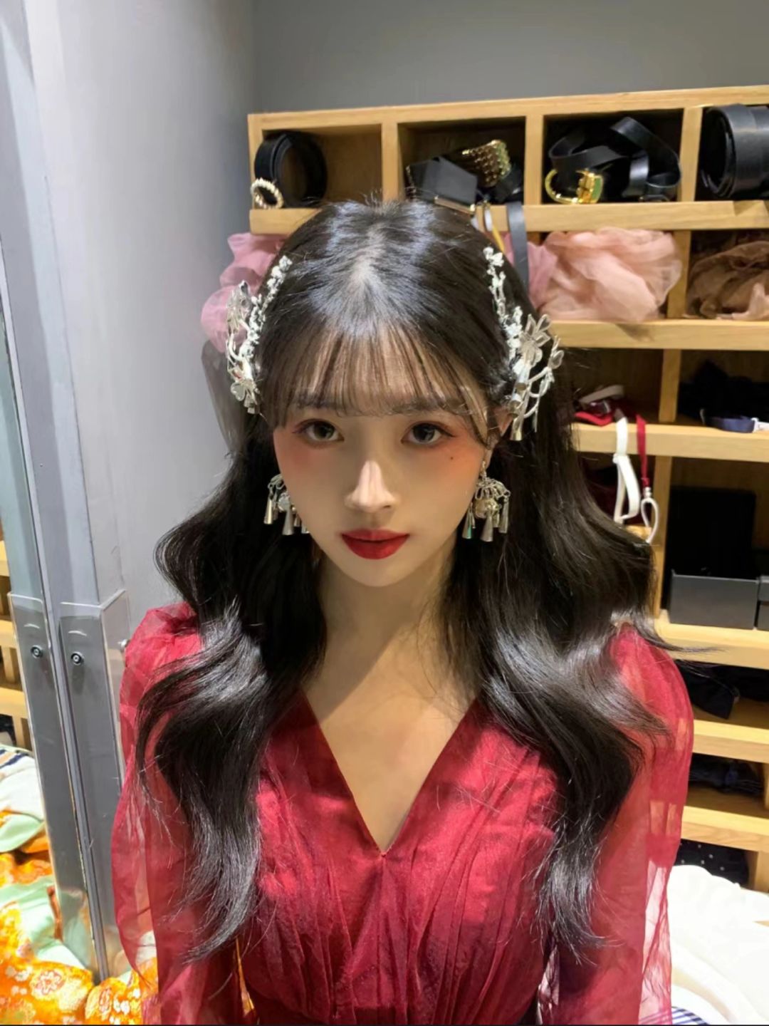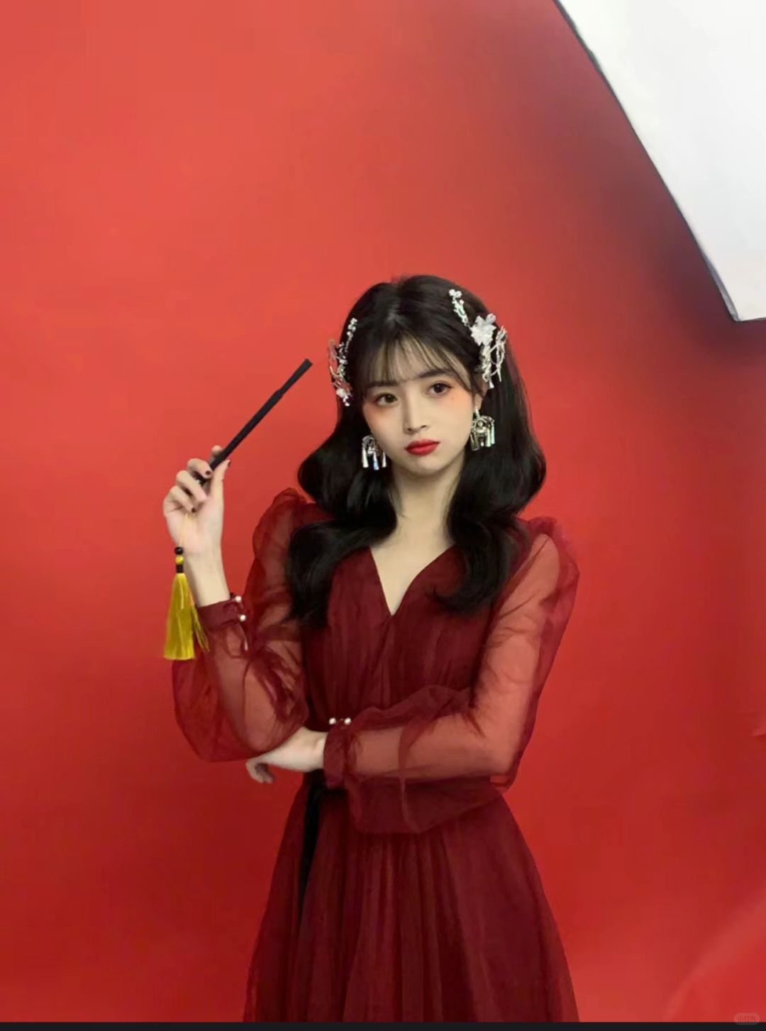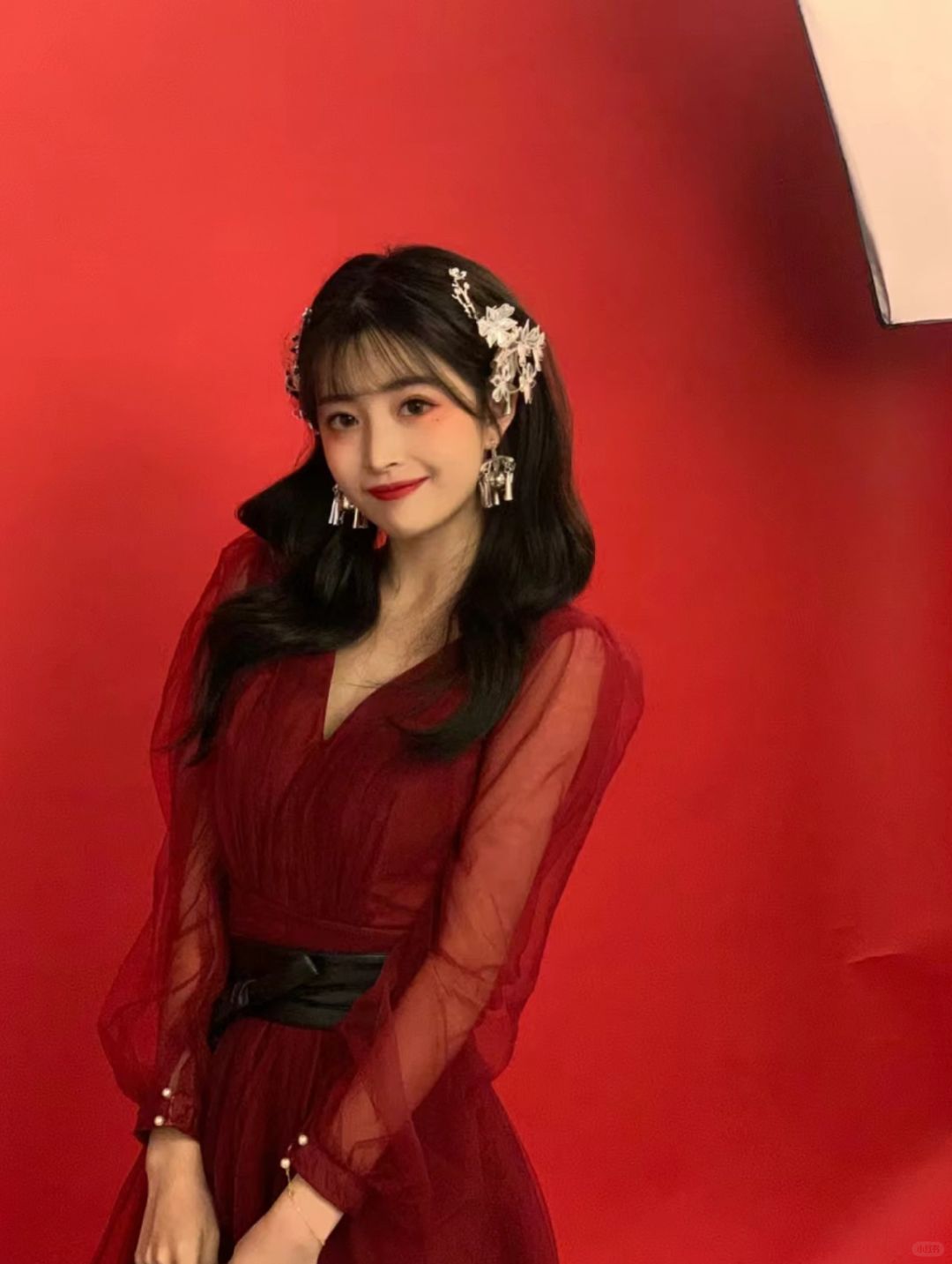 看到这个话题忍不住用海马体拍的新年照来参加啦🪭 新年就要穿红裙子![飞吻R]红玫瑰色的妆容真的好适合过年(੭ˊᵕˋ)🧨 🪭新年妆容小tips: 1.腮红:脸颊画上膨胀色的橘色腮红,打在眼下可以缩短面中,幼态感max! 2.眼影:大地色眼影打底,红色眼影晕染眼尾(具体妆容在最后两张图~) 3.口红:一定要画饱和度高的口红,黑发红唇yyds! 4.发型:用玉米夹卷出高颅顶发型!可以卷大卷发!