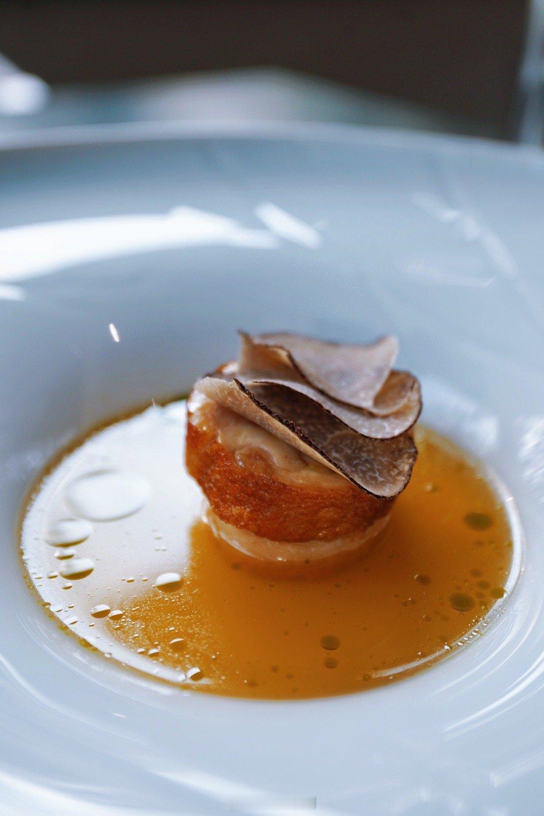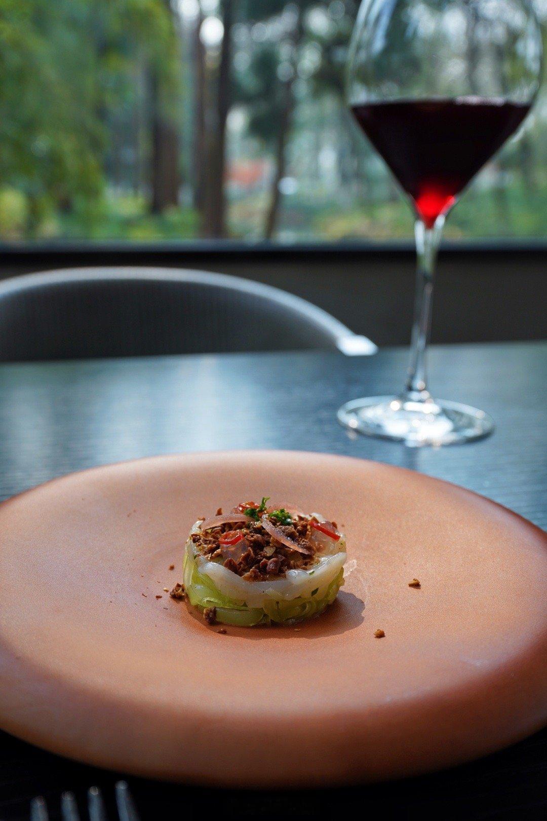 菜很精致,法餐一样的节奏与服务。中式元素,江浙菜的风味,比如糟卤、葱油、梅干菜、冬笋、绍兴麻鸭……自有特色。