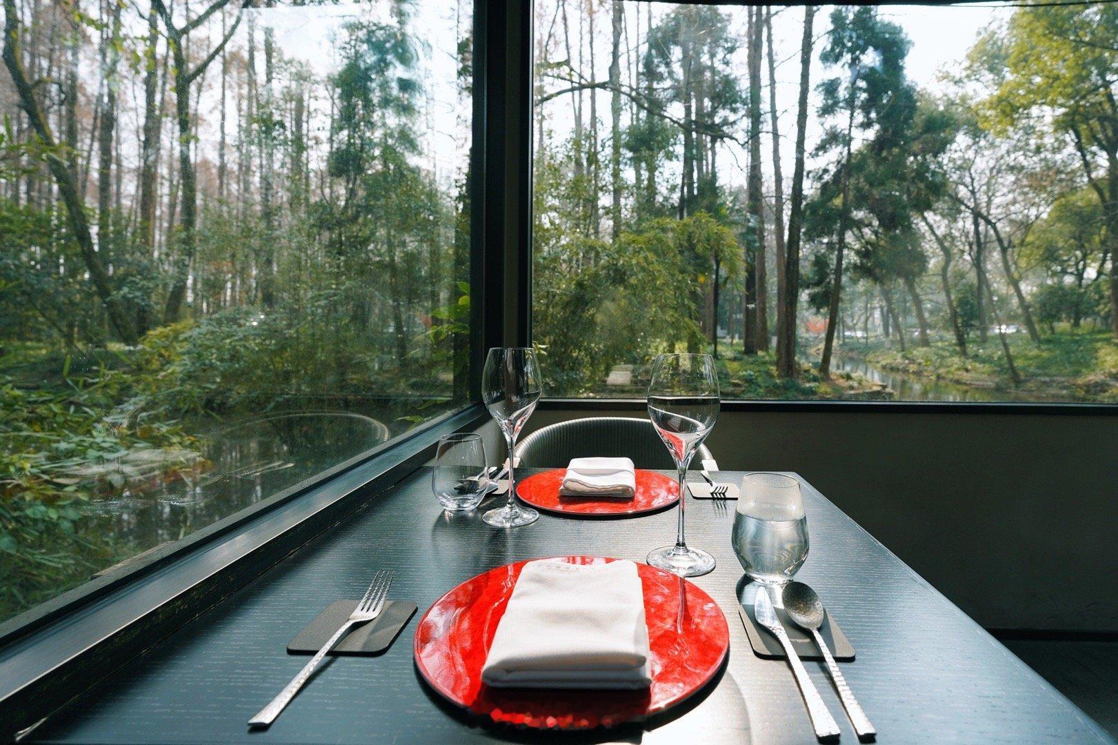 曲院风荷,冬天依然雅致,绿树环抱,溪水绵延。我专门寻得【青岚】,为了在画中享用美食美景。