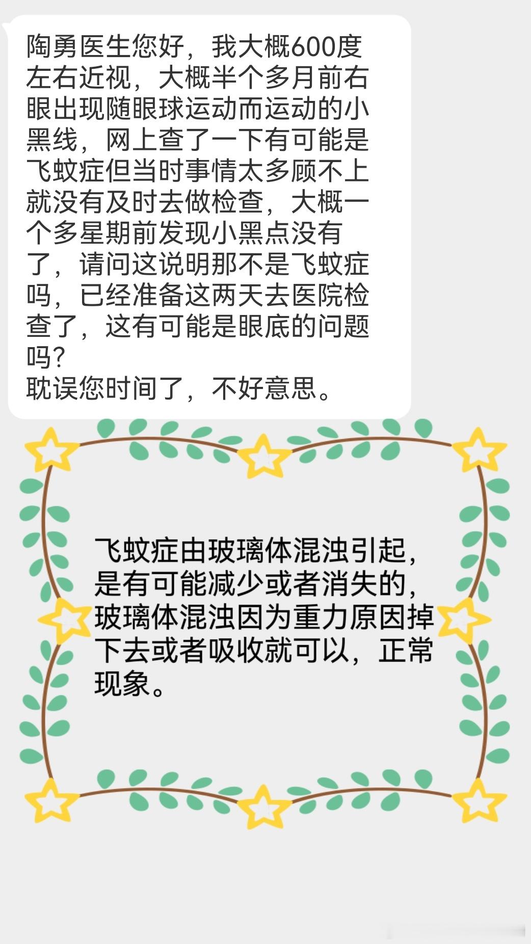 陶勇[超话]陶勇医生每周一答【本周关键词】脉络膜新生血管,青光眼,飞蚊症,黄斑病