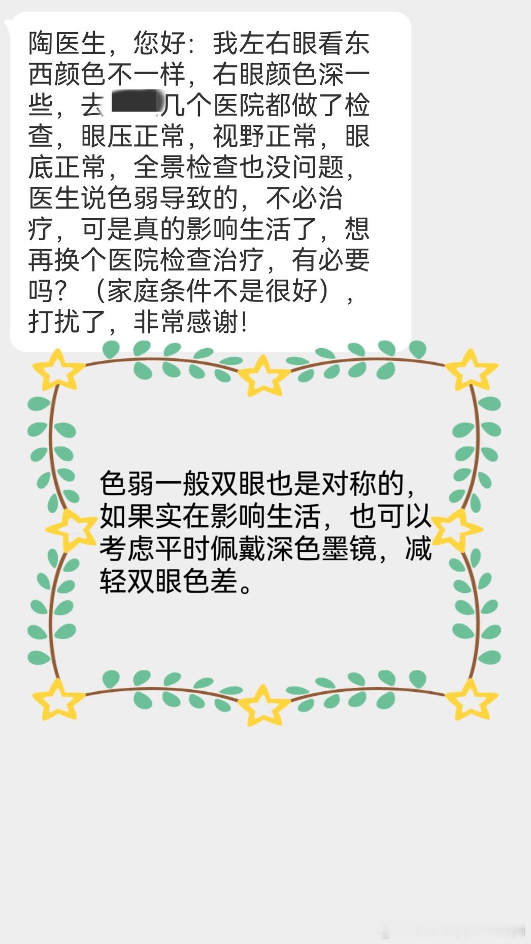陶勇[超话]陶勇医生每周一答【本周关键词】色弱,虹膜炎,屈光参差,高度近视,先天