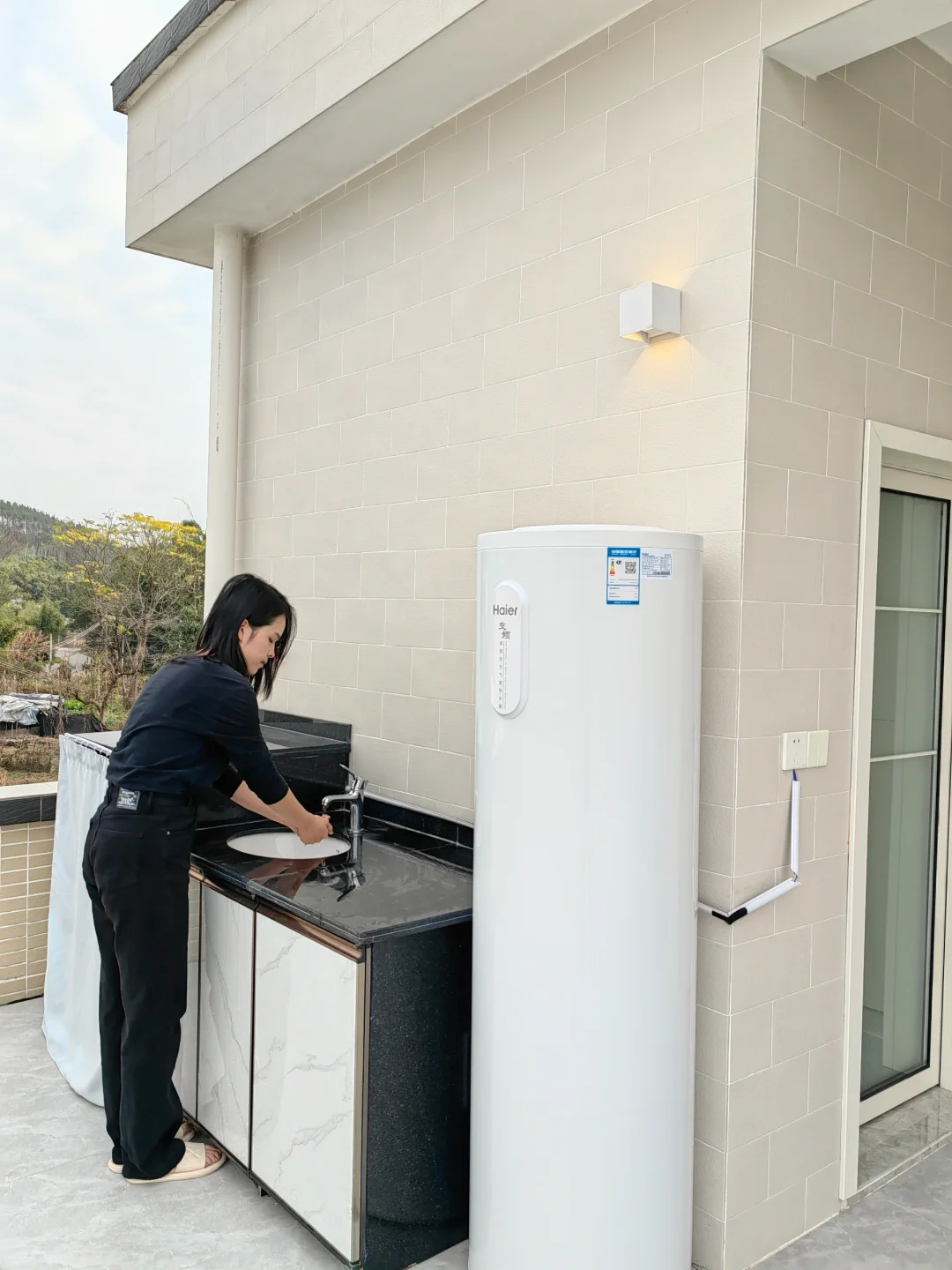 目前我们村还没通自来水,家家户户都是采用从水井抽水到楼顶蓄水桶供水的模式。水井的水因为没经任何过滤和消毒,水质难以保证。这款空气能热水器还有实时监测水质功能,水质变差时可以开启“净化抑菌”功能,同时释放阻垢因子,防止水垢形成。现在村里正在搞乡村振兴项目,当初的泥沙村道都铺成了水泥路,污水沟也变成了埋地下的排污管道,自来水项目也在规划建设中,农村的生活也会越来越便利舒适。