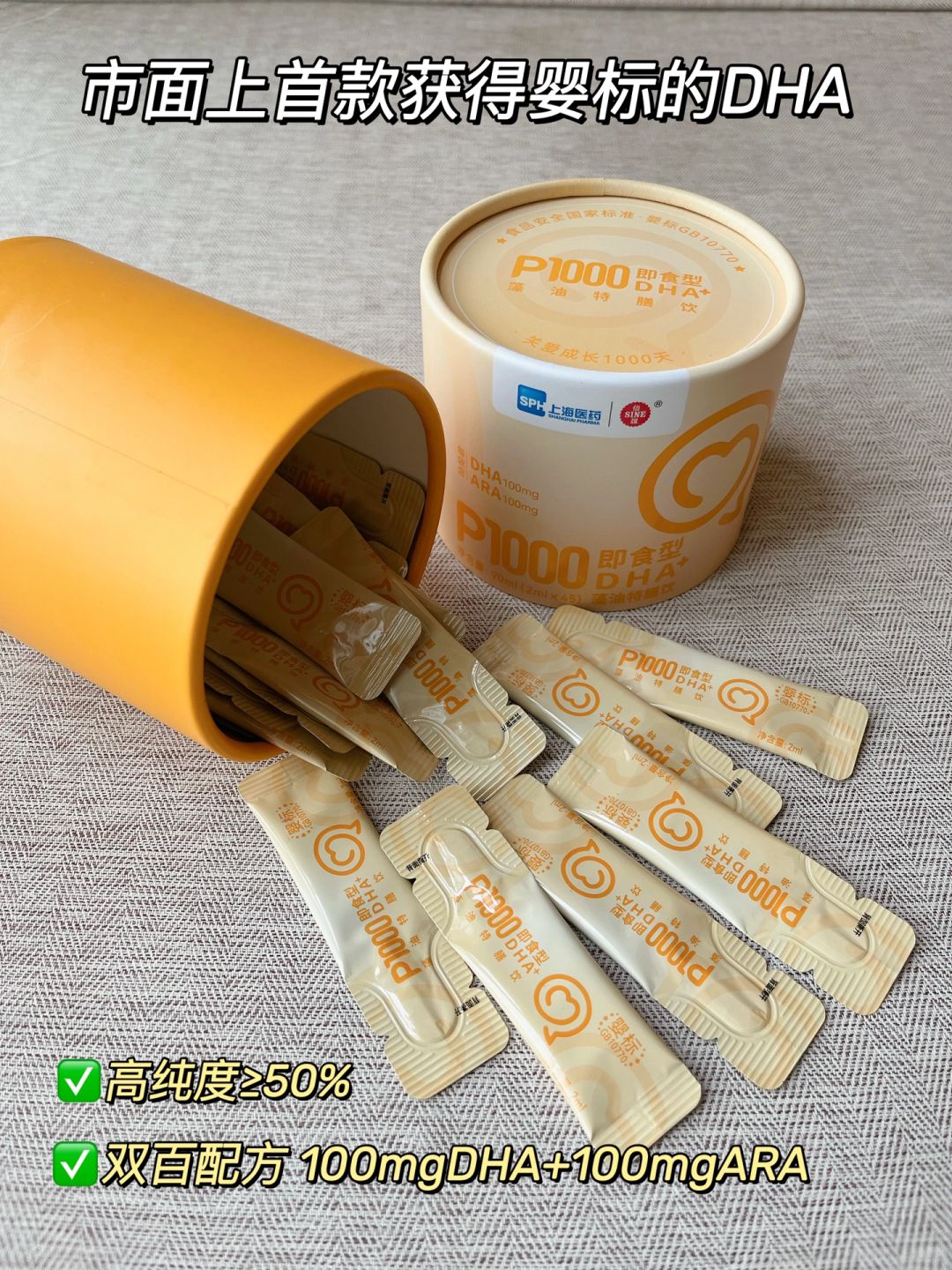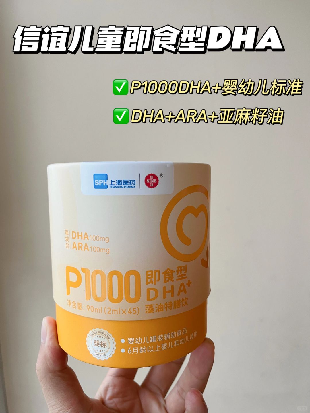 👉在这里我给大家安利我家宝贝吃的信谊 P1000系列的DHA,它是shou批获得婴标的DHA,婴标很严格,满足这一点的DHA真不多,可谓是DHA中的“爱马仕”