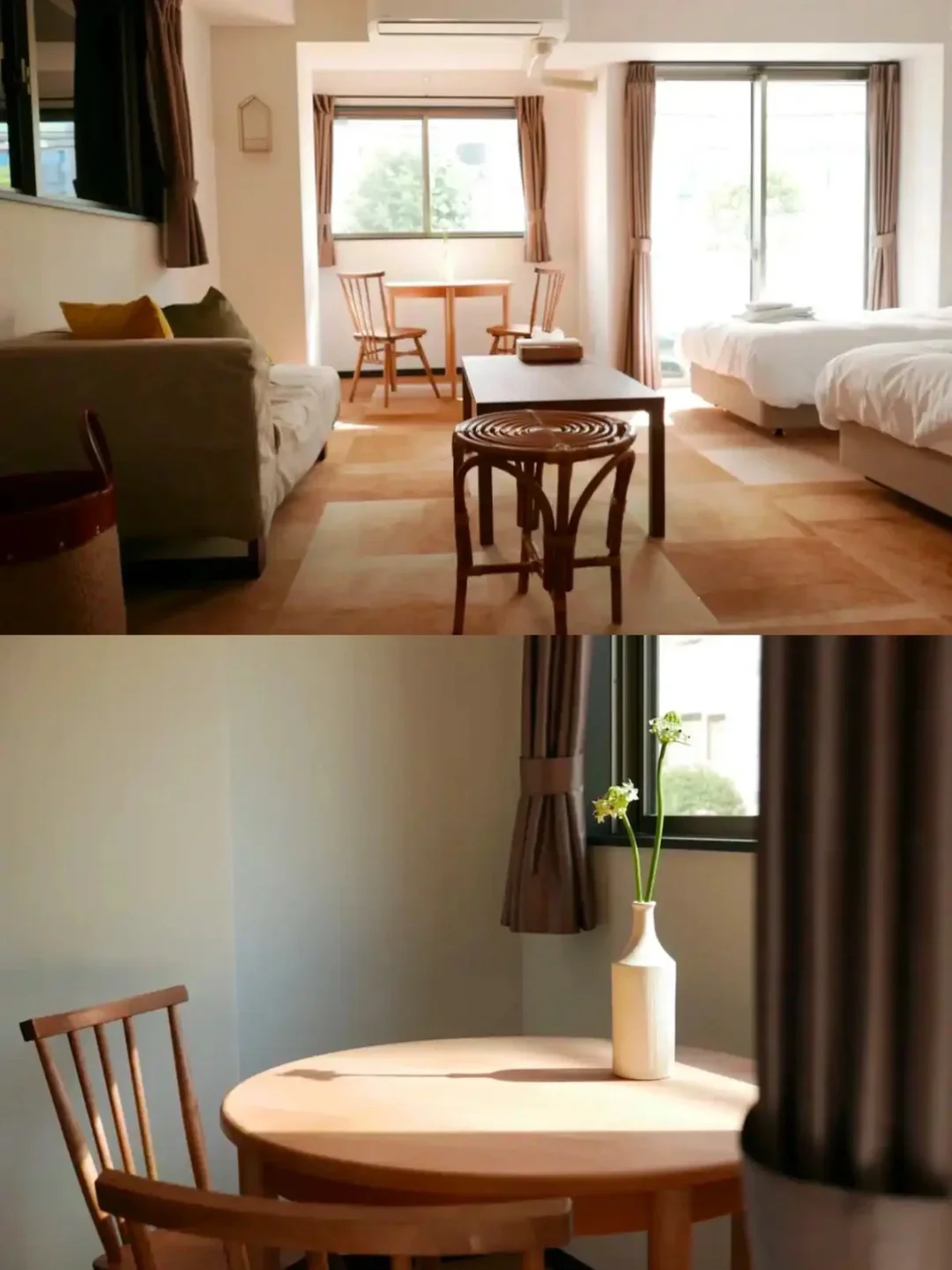 ▫️ 房间很日式,家电设施也齐全,厨房内还准备了免费饮料