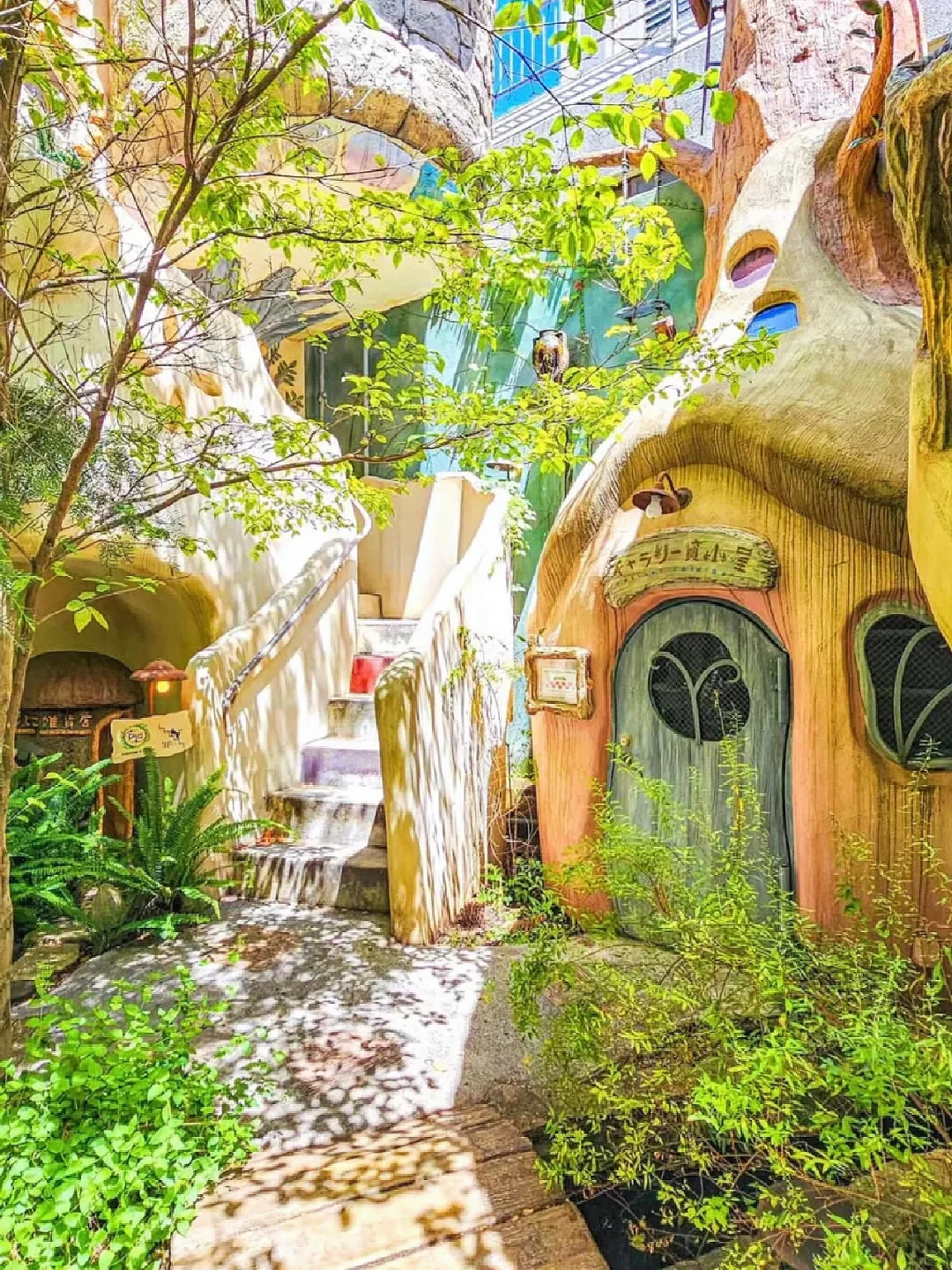 以猫咪为主题的童话小村落。里面有主题餐厅、以及可以与猫咪互动的咖啡厅,整个村庄小而梦幻,不但有猫咪造型的喷泉,连墙壁透视口也是猫掌造型!就像一个绘本世界