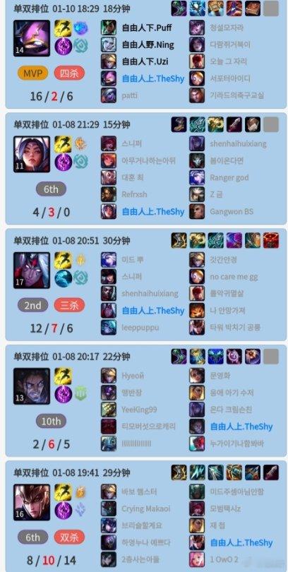 TheShy在LPL没人要?韩服爆砍十二连胜 其间共使用11个不同英雄