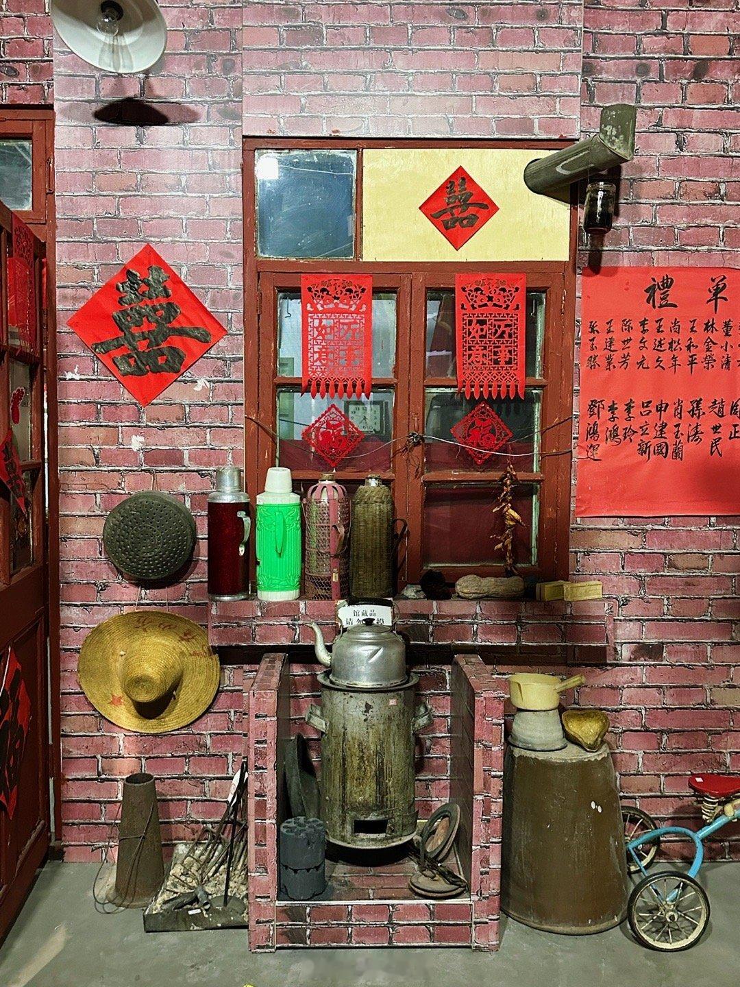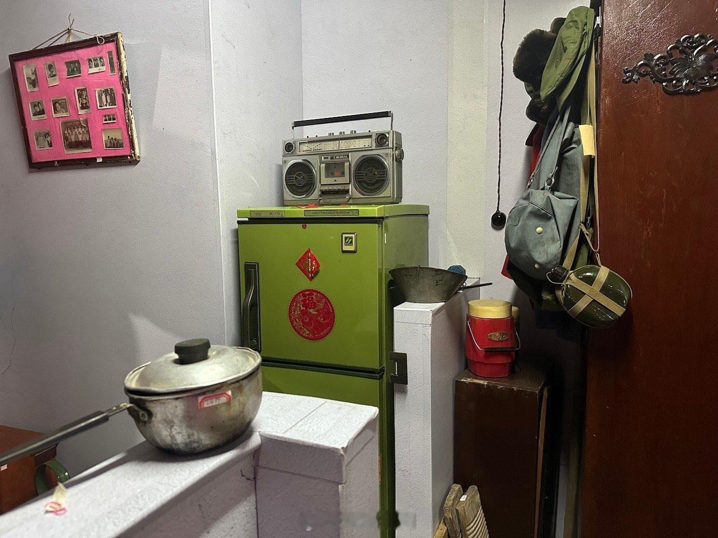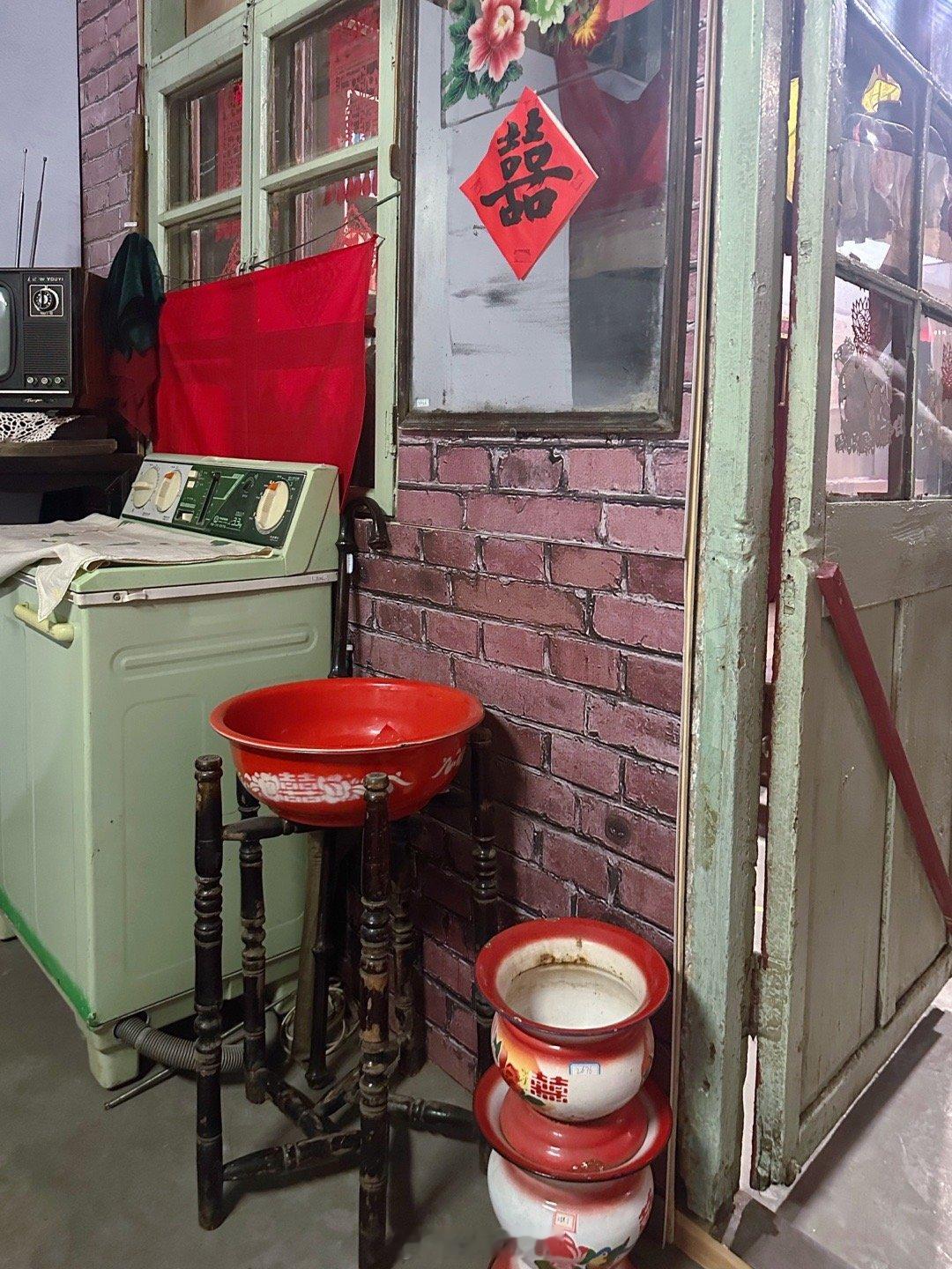 有一个实景的体验区,完全复原了旧生活。这家肯定是个大户人家,四件套样样齐全,冰箱,洗衣机,电视,自行车啥都有。